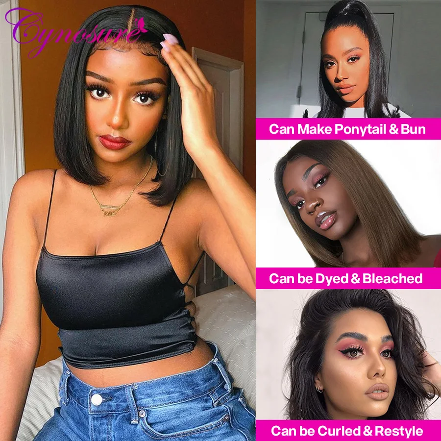 Парик из натуральных коротких волос Cynosure, перуанский, прямой, Т-образный