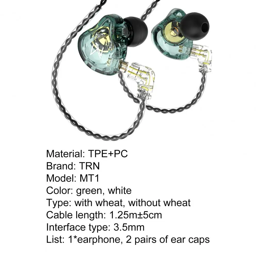 Внутриканальные наушники TRN MT1, HIFI наушники-вкладыши с тяжелыми басами, подвесные спортивные, для бега, музыкальная стереогарнитура, музыкальные наушники