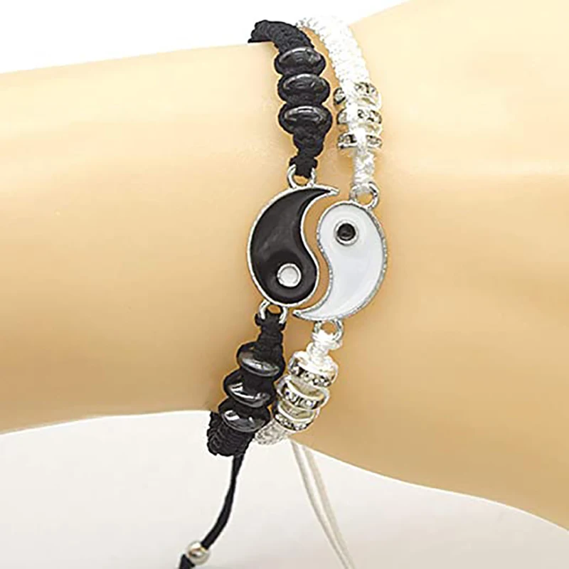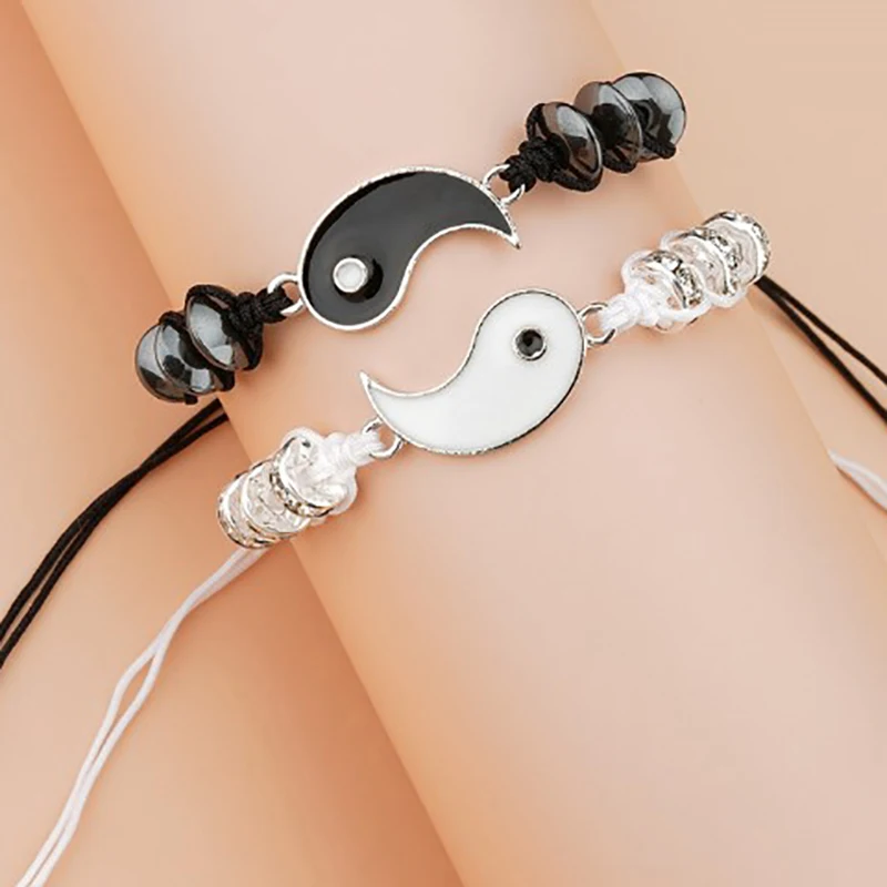 2 Инь Ян регулируемый браслет шнура плетеные браслеты ручной работы браслеты друг