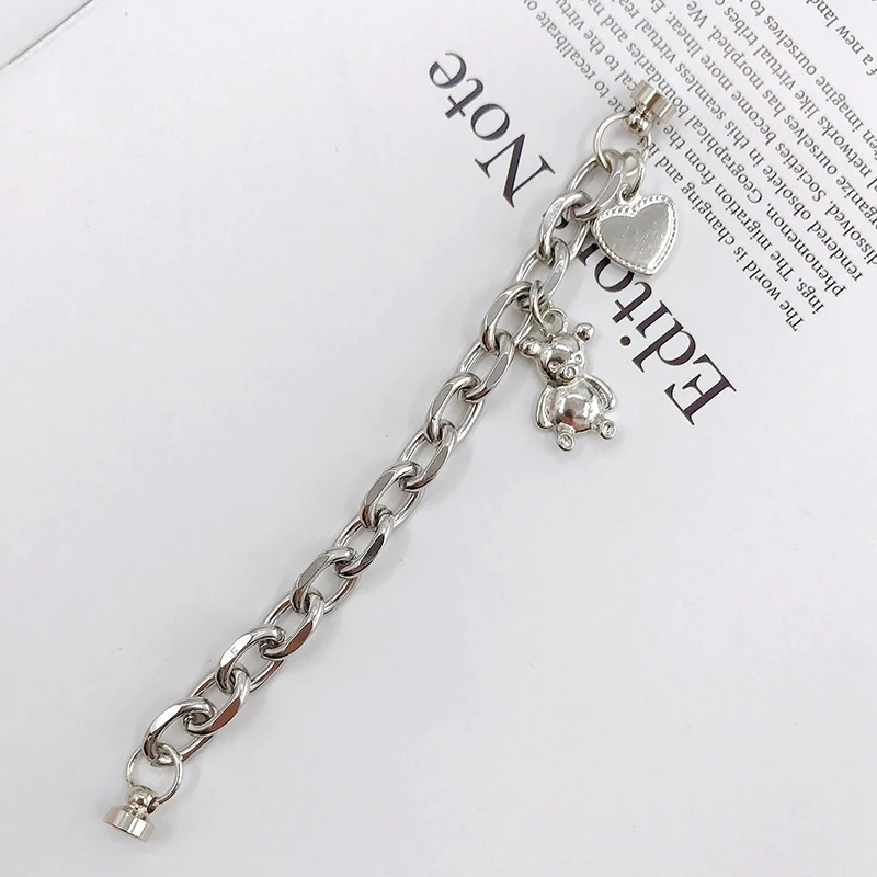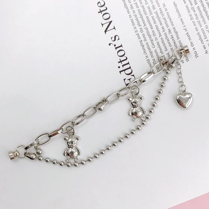 1 шт. из металла в стиле панк с маленьким медведем любящее сердце цепи набор сделай сам для защищает телефон от нежелательных царапин Чехол украшения Цепочка для ключей ювелирные изделия аксессуары