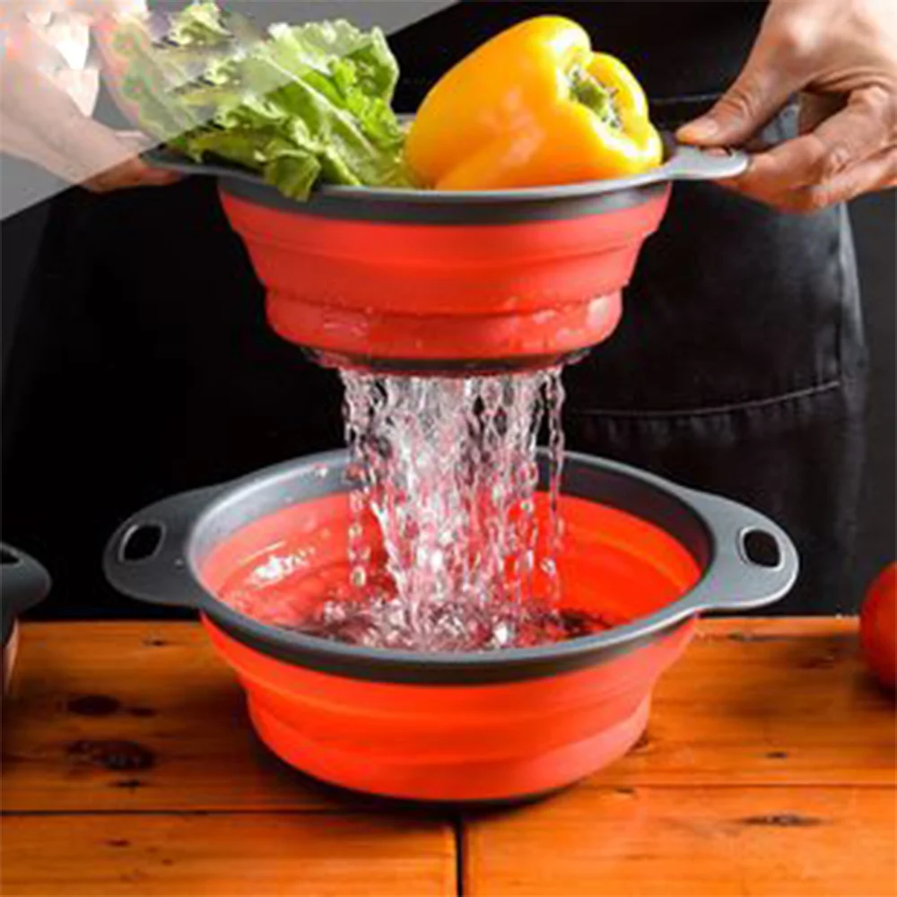2 шт.компл., складной силиконовый дуршлаг, корзина для мытья овощей...