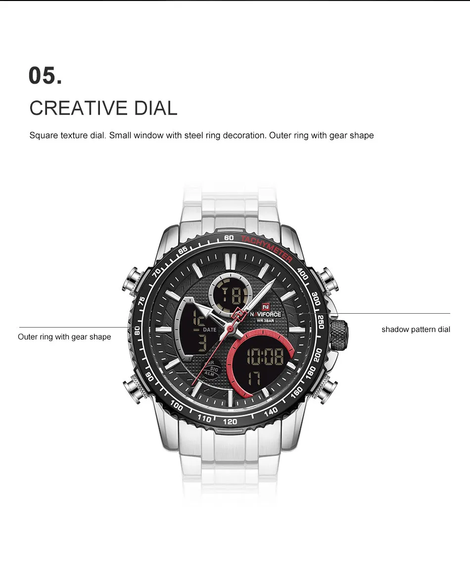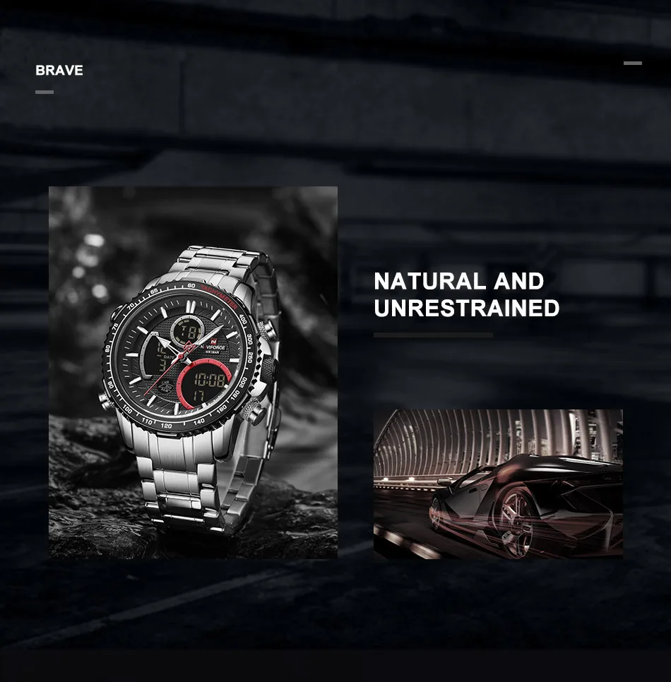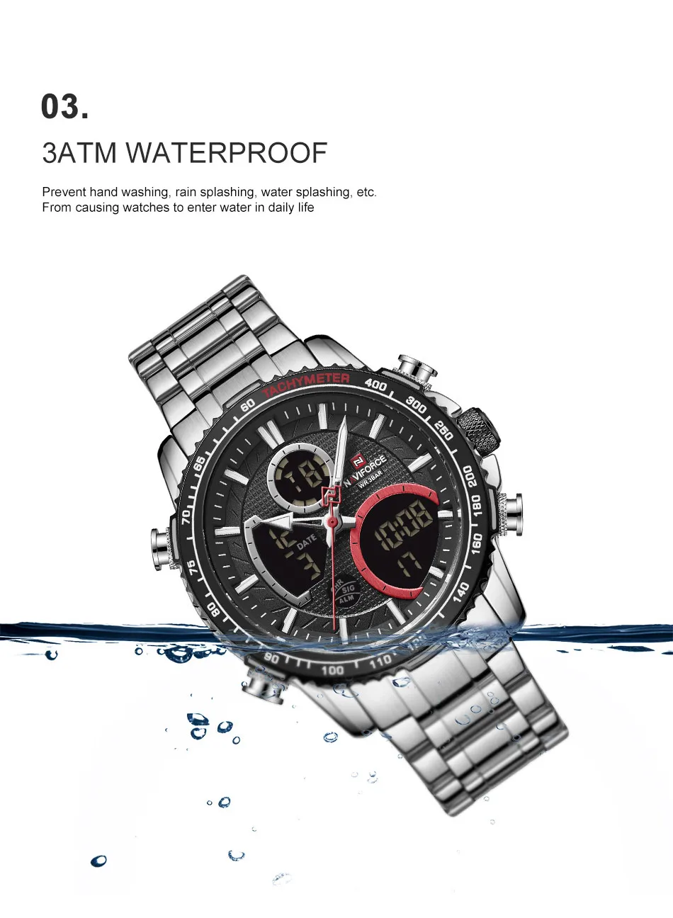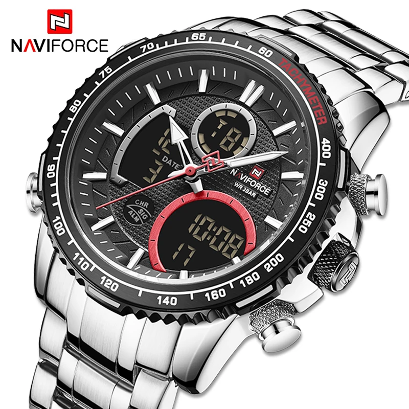 Часы наручные NAVIFORCE Мужские кварцевые, спортивные Водонепроницаемые светодиодные цифровые ударопрочные в стиле милитари, с большим циферблатом, с календарем, черные