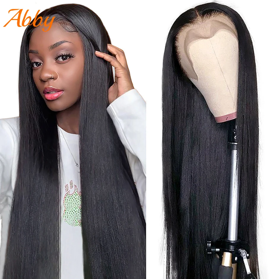 Эбби прямые парики на шнурке для женщин монгольские прямые 13x4 на шнурке натуральные волосы предварительно выщипанные 4x4 парики на шнурке