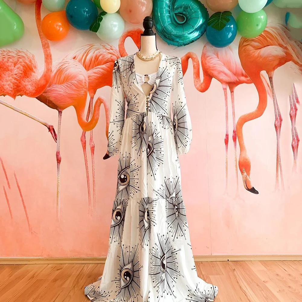 Женское пляжное платье с принтом глаза, длинное белое платье-бандо ...