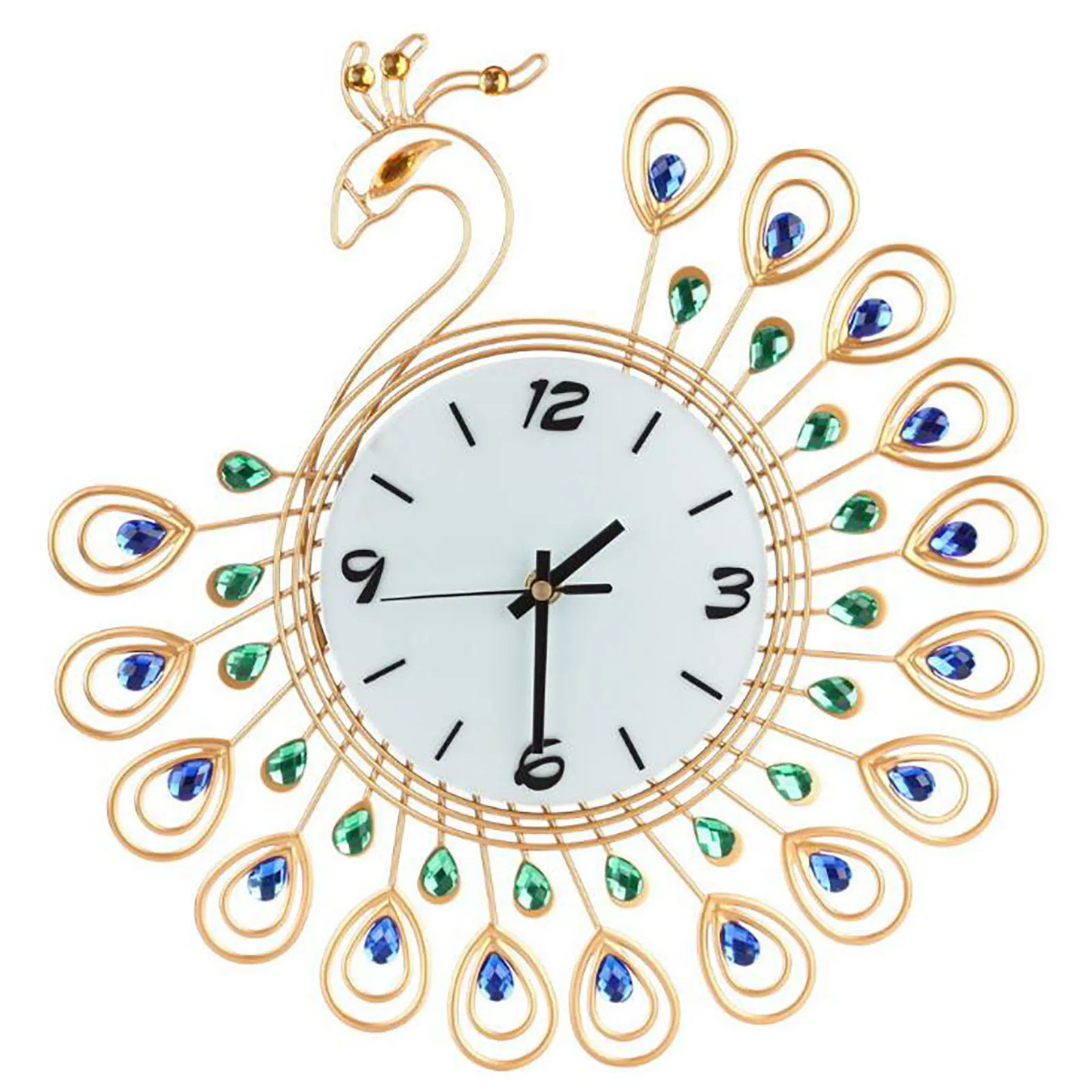 Особенности 24 часа точной работы и отключения звука. Безопасный и экологичный процесс окраски. Не деформируется, не выцветает, прочный и экологичный. Дизайн с 123 сверлами для вспышки, выглядит изысканно. Использование Нефритового песчаника в качестве поверхности часов. Также с ясным масштабом. Простота установки и использования. Подходит для гостиной, спальни, конференц-зала, кабинета, офиса. Спецификация Тип: настенные часы Комбинация: отделяется Цвет: Золотой Источник питания: 1 батарея AA (не входит в комплект) Материал: металл и пластик Особенность: Античный стиль Тип дисплея: игла Тип Motivity: аналоговый Форма: Одинарная Вес: 970 г Диаметр: 40 см Посылка включает в себя 1 x часы с павлином