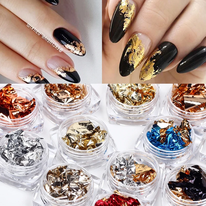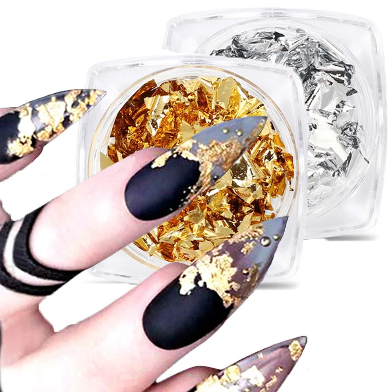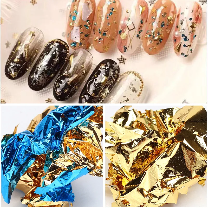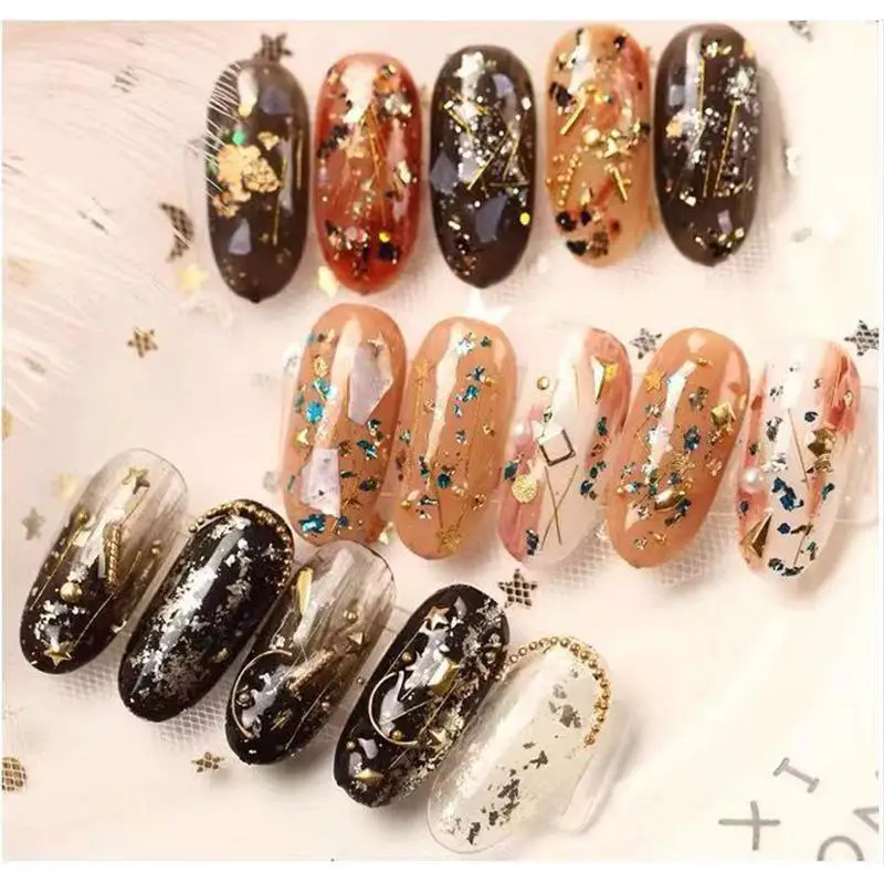 1 коробка красочный фон для ногтей, нерегулярные ногтей Стикеры Бумага золотого и серебряного цвета для ногтей Flakies DIY Красота дизайн для 3D нейл-арта украшения