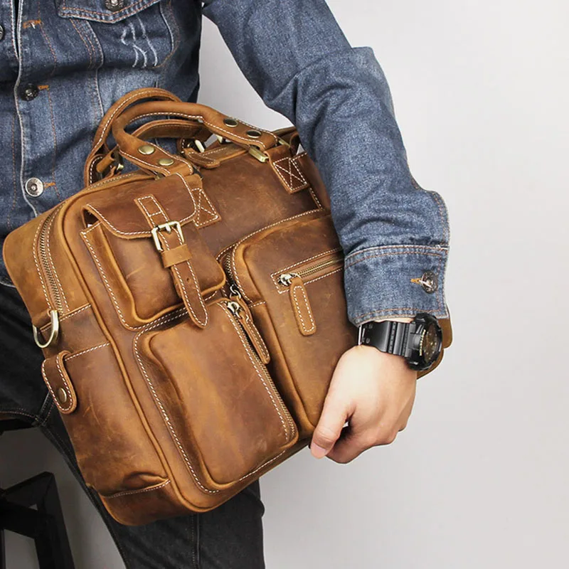 Сумка-портфель мужская из натуральной кожи, винтажная, M7028