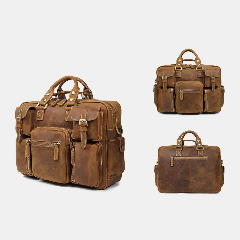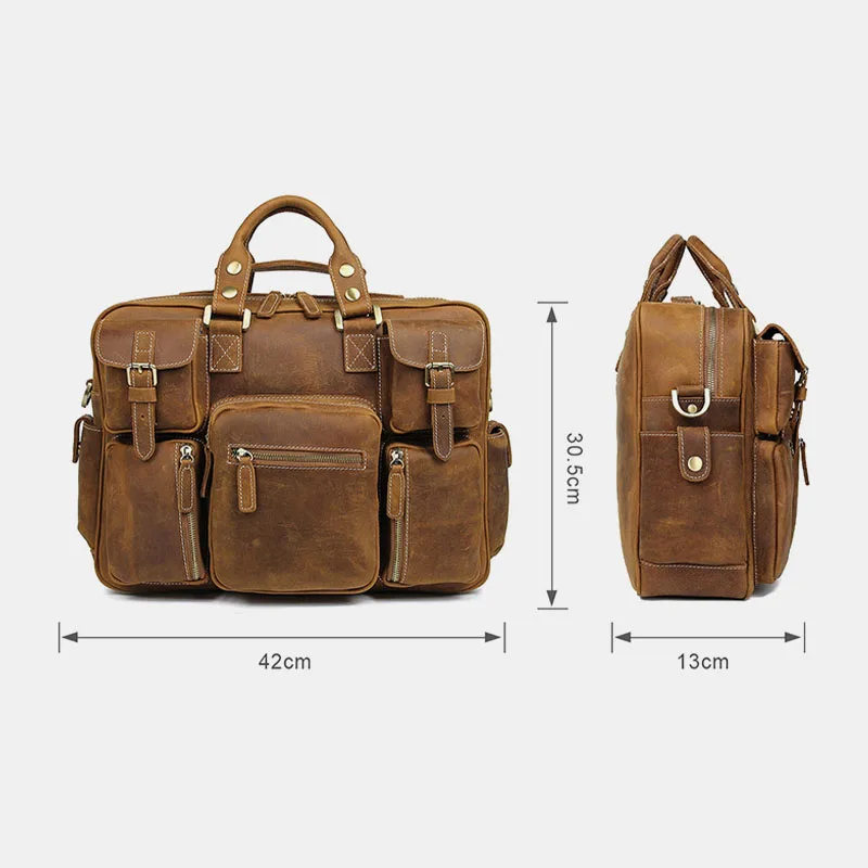 Мужской кожаный портфель Crazy Horse, 16 дюймов, деловая сумка для ...