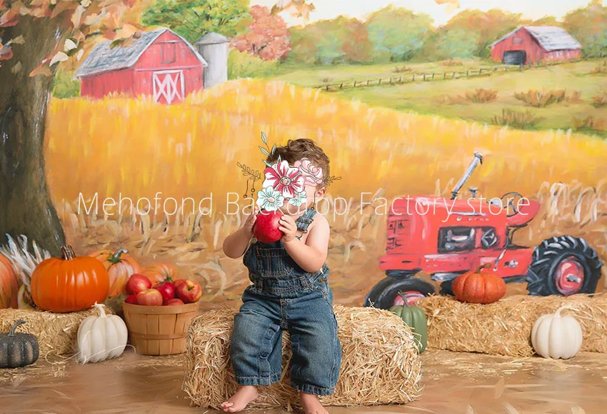 Фон для фотосъемки Mehofond осень красная ферма Тыква трактор новорожденные дети день рождения фон для фотостудии реквизит