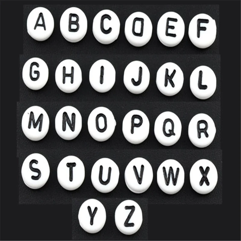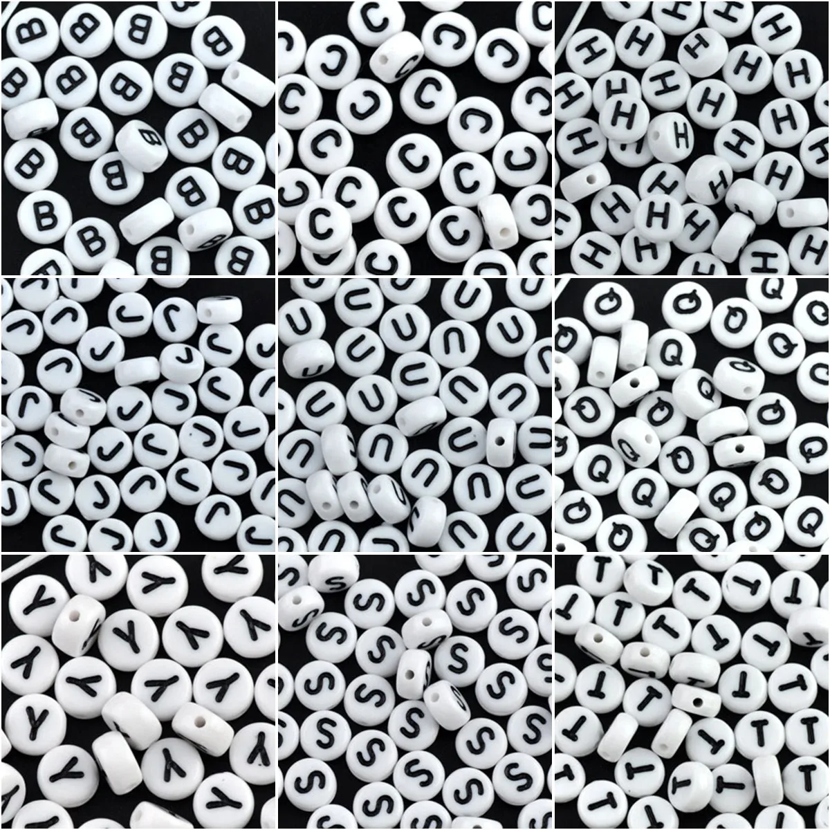 500 шт., акриловые бусины-разделители, 26 алфавитовбукв от A до Z, плоские круглые белые бусины алфавита для изготовления браслетов своими руками, ювелирных изделий