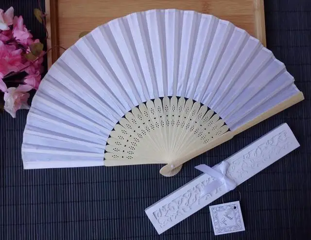 Индивидуальный логотип на свадьбе, вечеринках, подарках роскошный Шелковый веер для рук в элегантной подарочной коробке (черный/белый/бежевый)