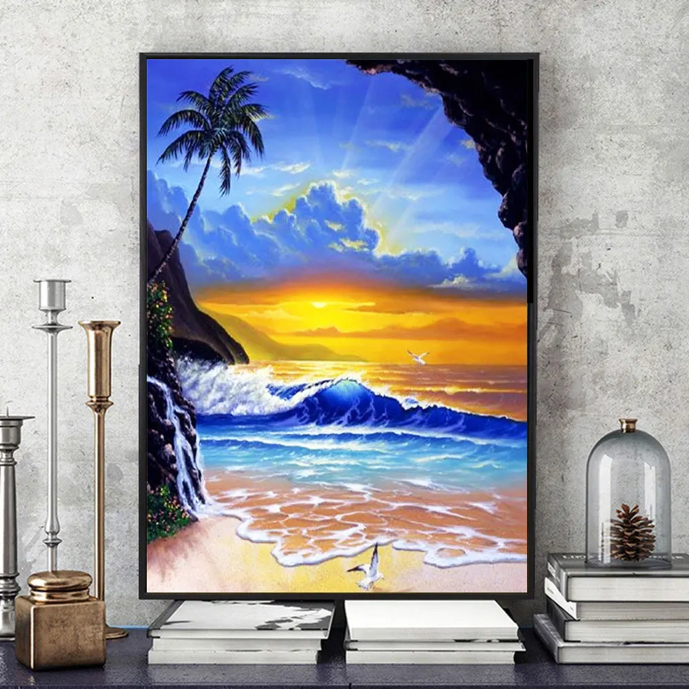 Набор для алмазной вышивки квадратными стразами HUACAN, картина 5d с изображением морского берега, заката, для творчества, для домашнего декора