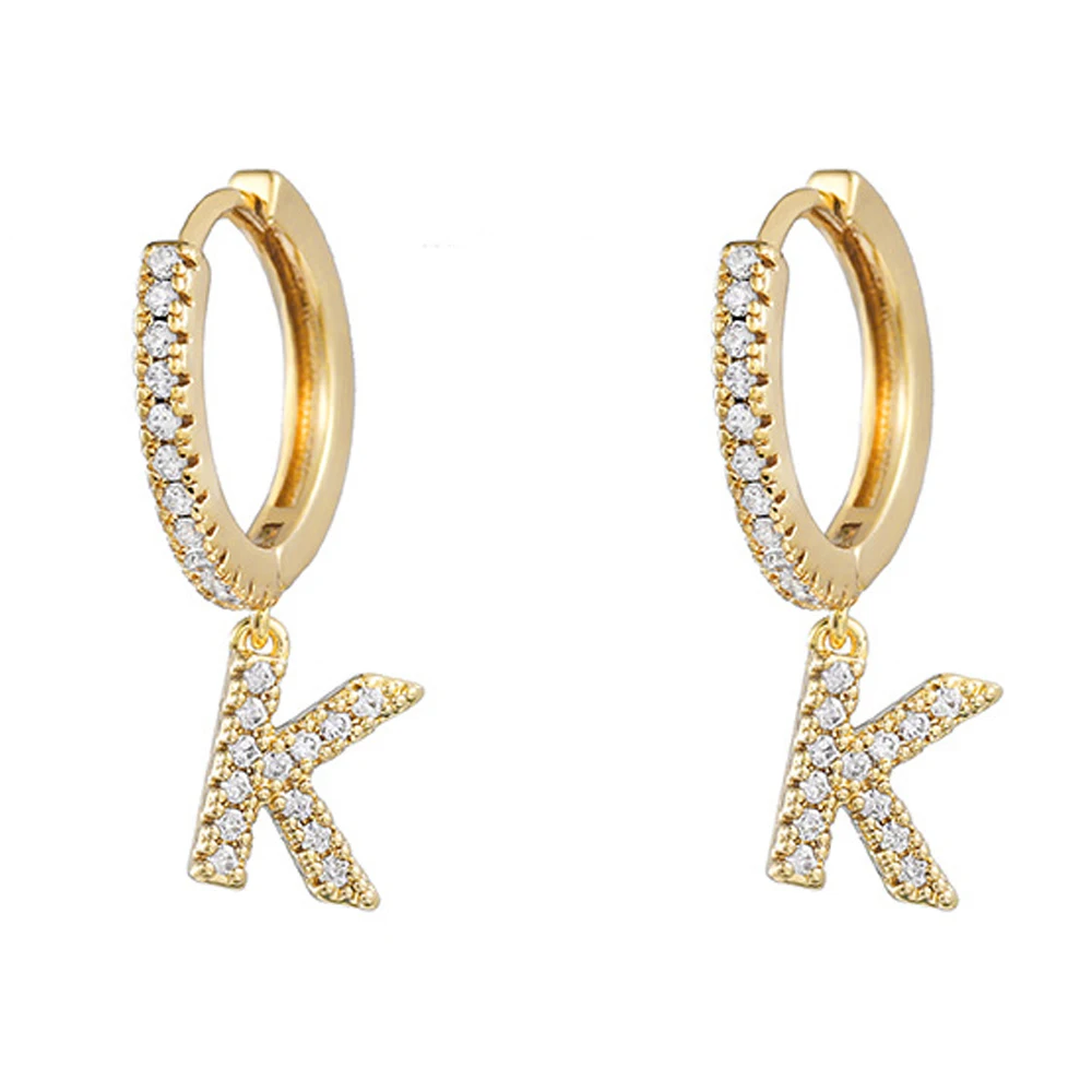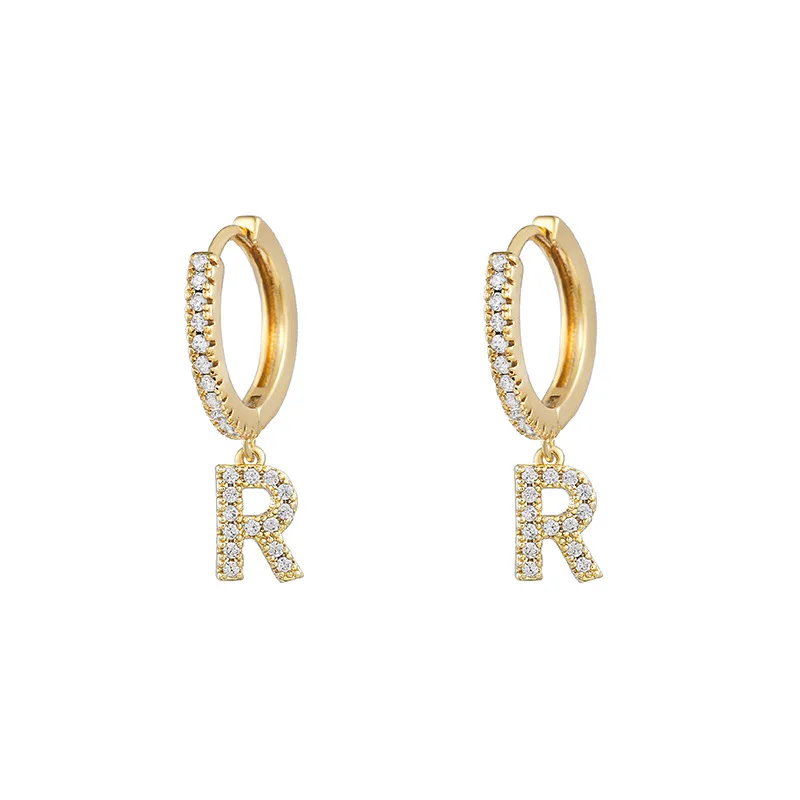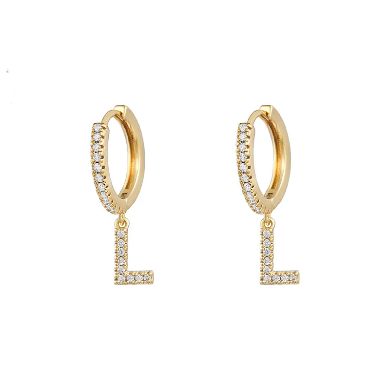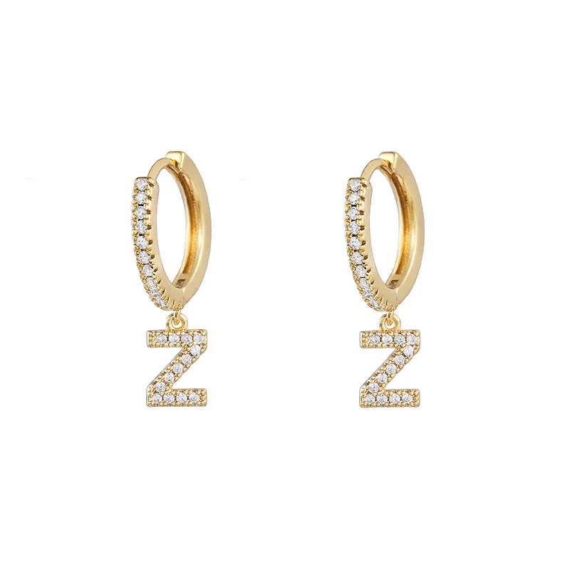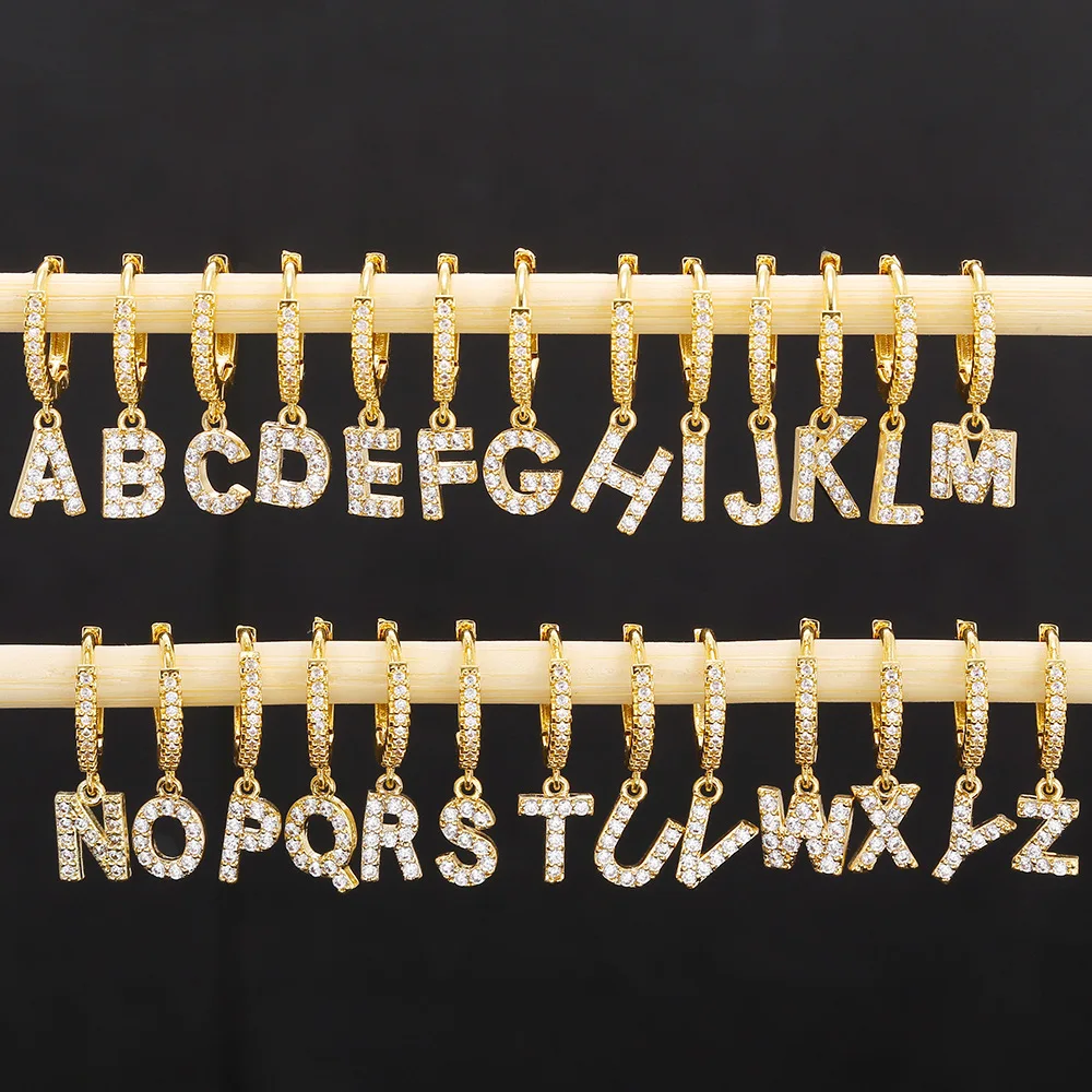 2021 Мода Медь микро паве кубический цирконий инициальный A-z буквы серьги-кольца Изящные алфавитные серьги для женщин Простые Ювелирные изделия