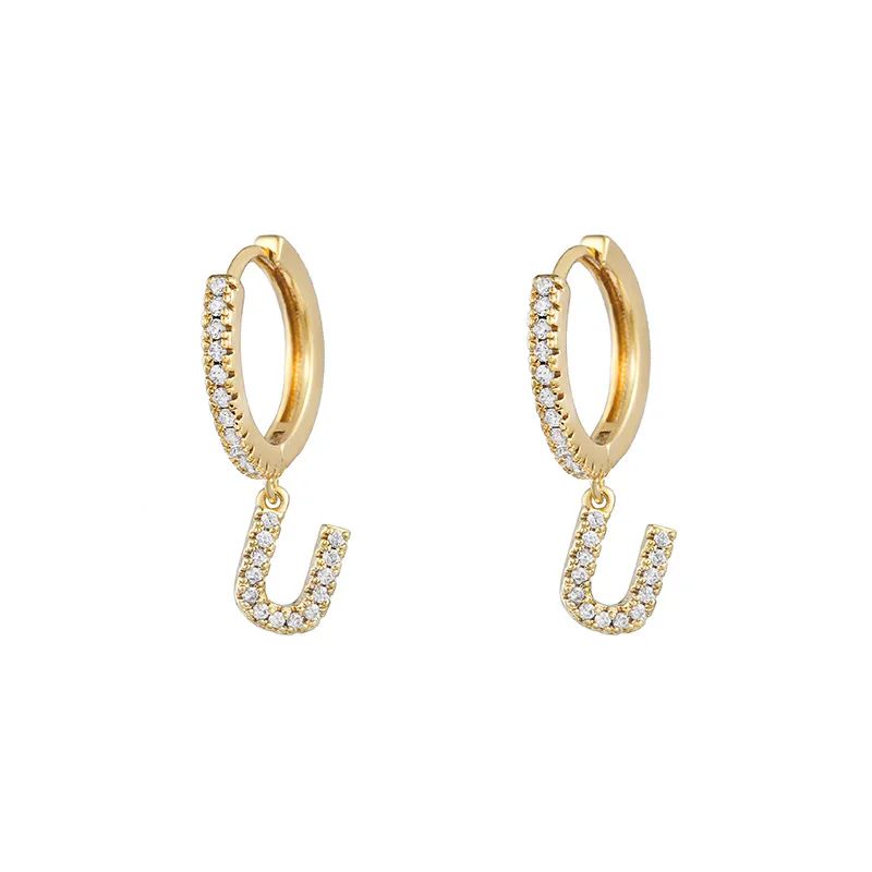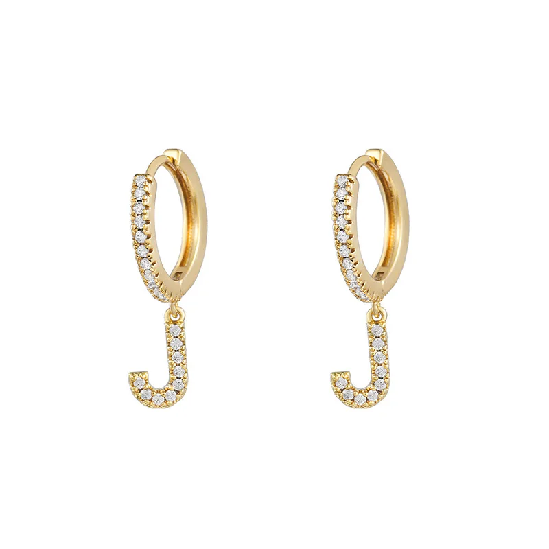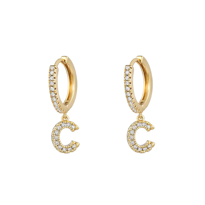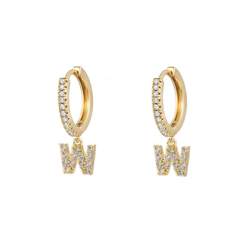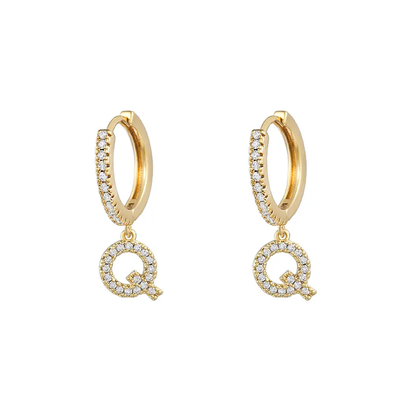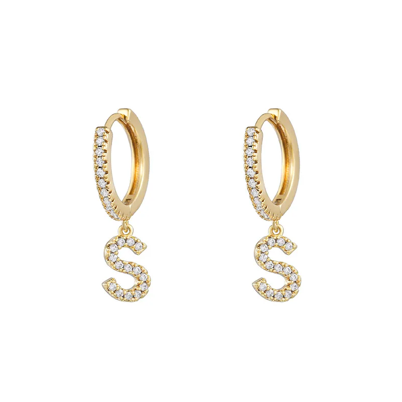 2021 Мода Медь микро паве кубический цирконий инициальный A-z буквы серьги-кольца Изящные алфавитные серьги для женщин Простые Ювелирные изделия
