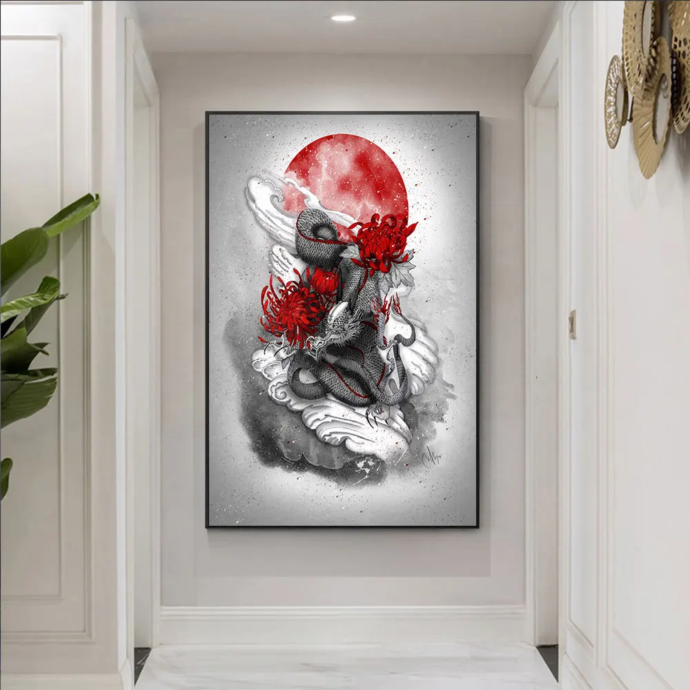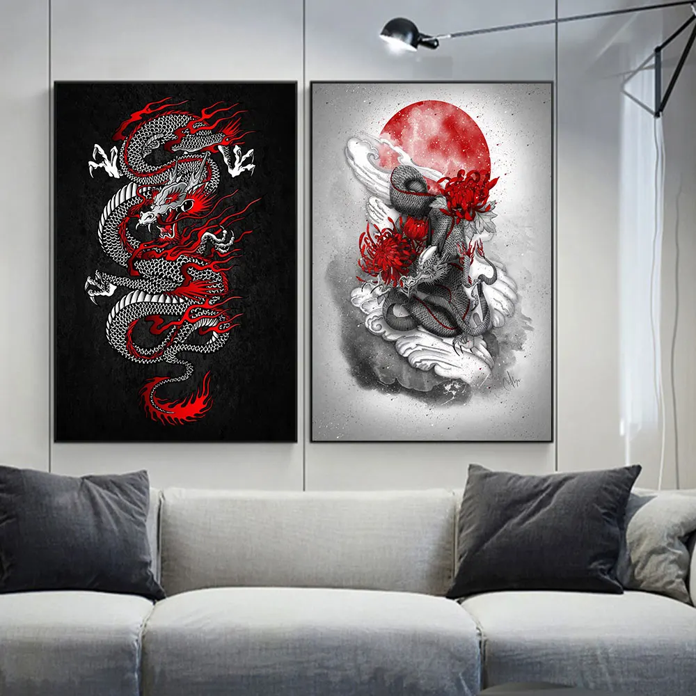Акварель Черный летающий дракон Холст Картина печать HD плакаты Тотем дракона Настенная картина для гостиной спальни домашний декор