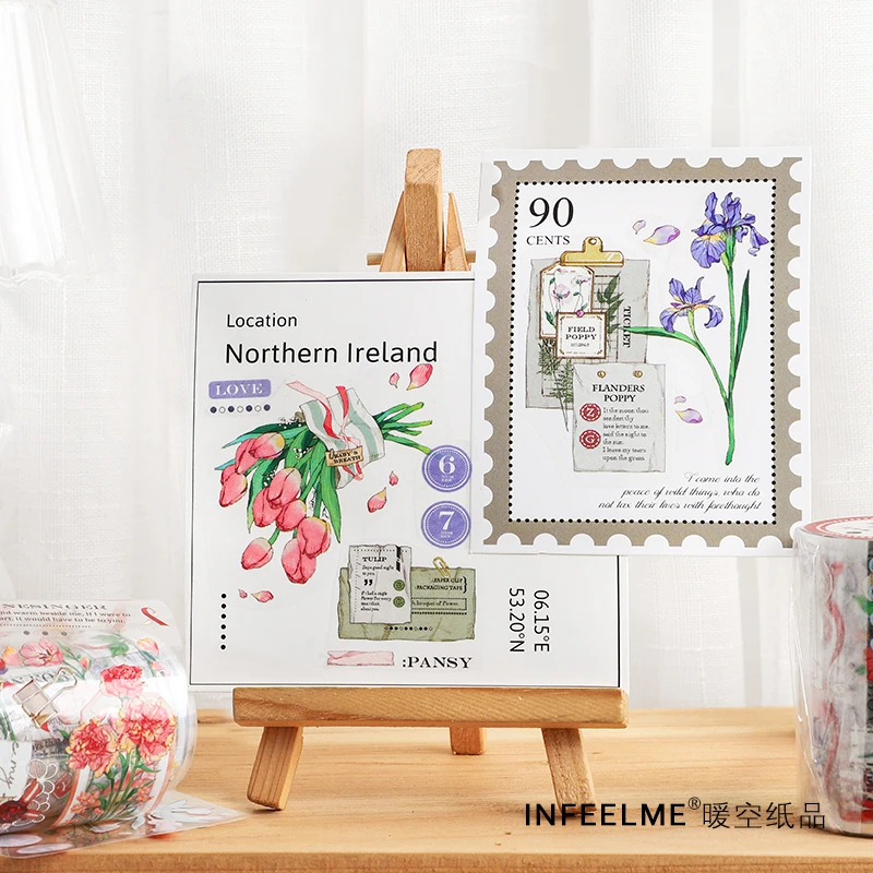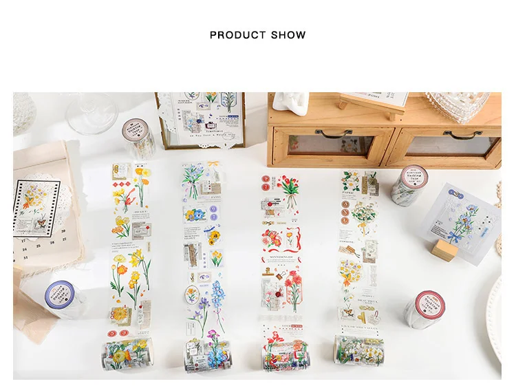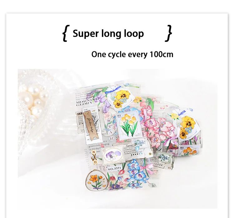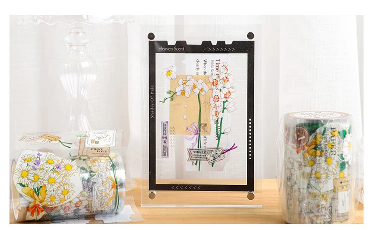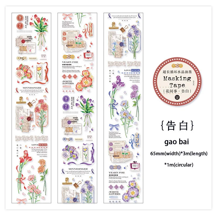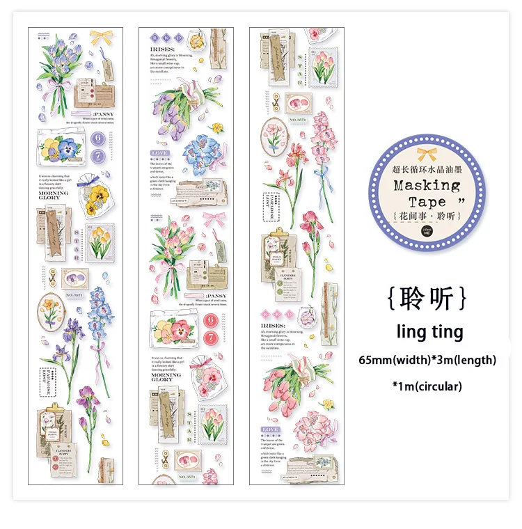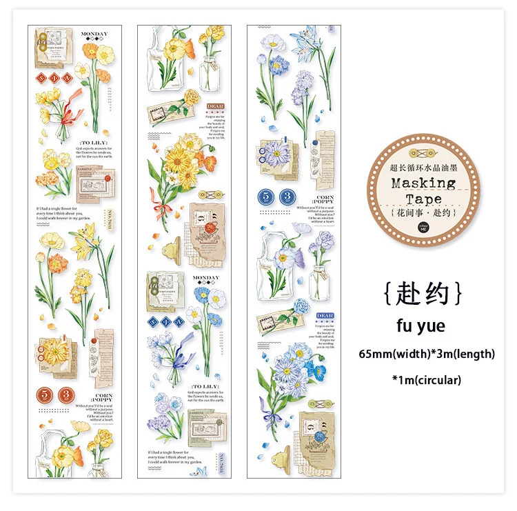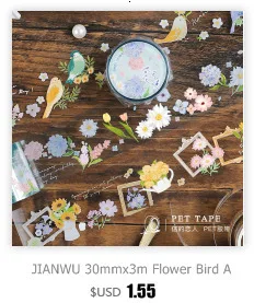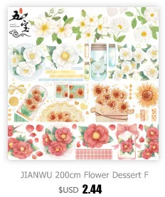 Декоративная лента JIANWU, 60 мм х 3 м, с цветочным рисунком, с хрустальными чернилами, маскирующая ПЭТ лента, наклейки для скрапбукинга сделай сам, декоративные канцелярские принадлежности