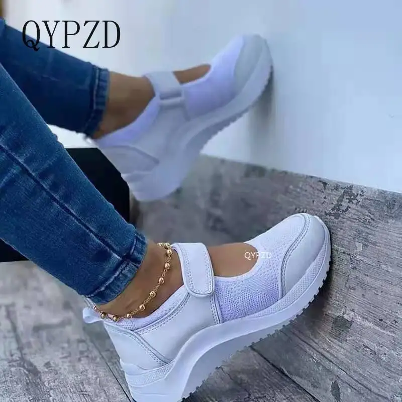 Кроссовки женские сетчатые, повседневная обувь на платформе, Вулканизированная подошва, дышащие, без шнуровки, лето 2021