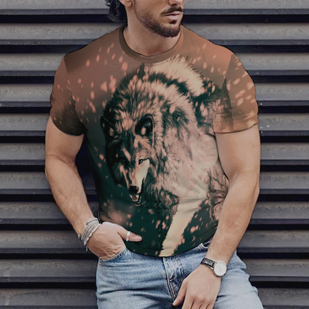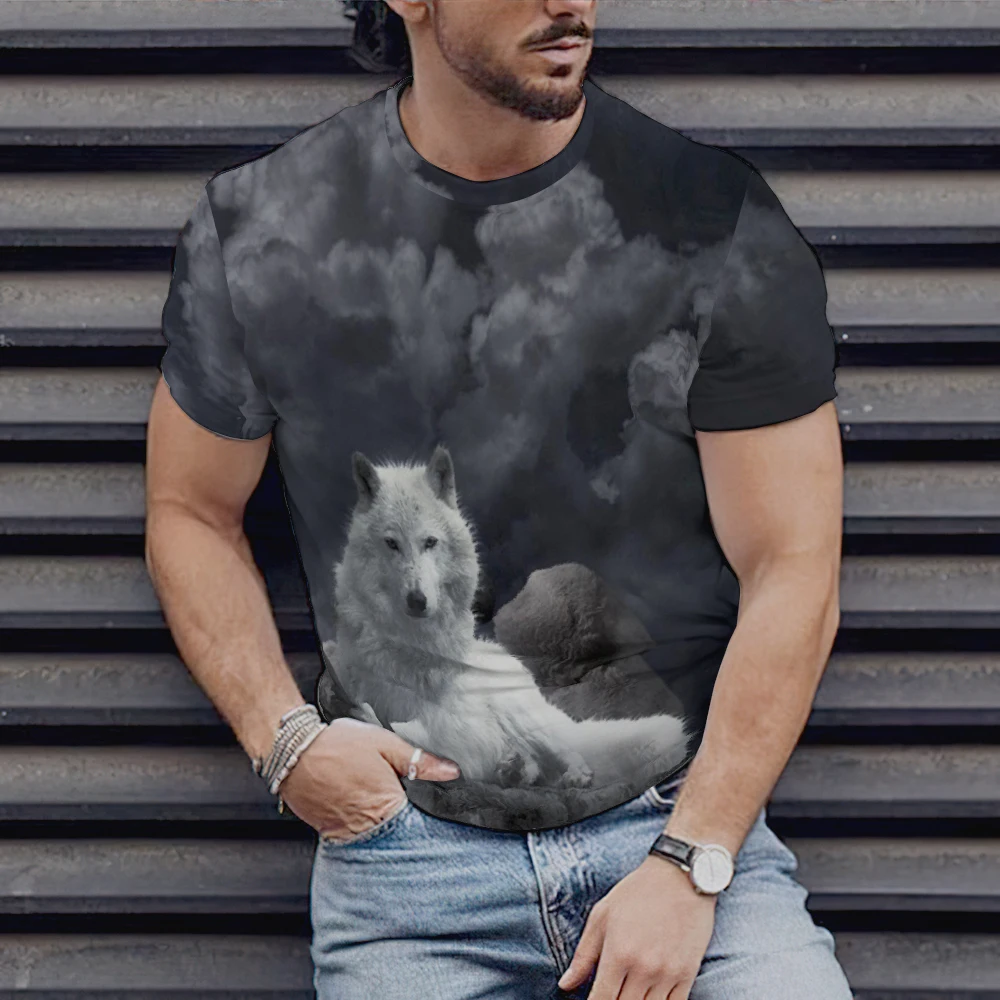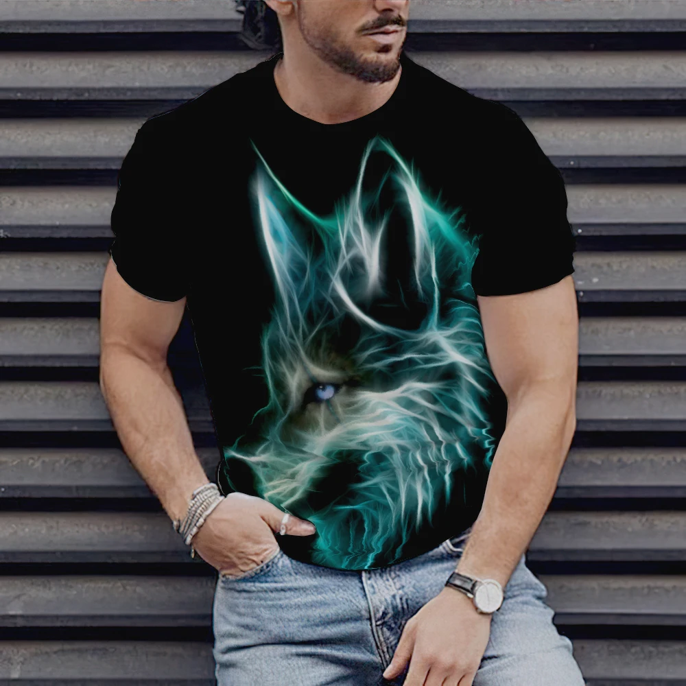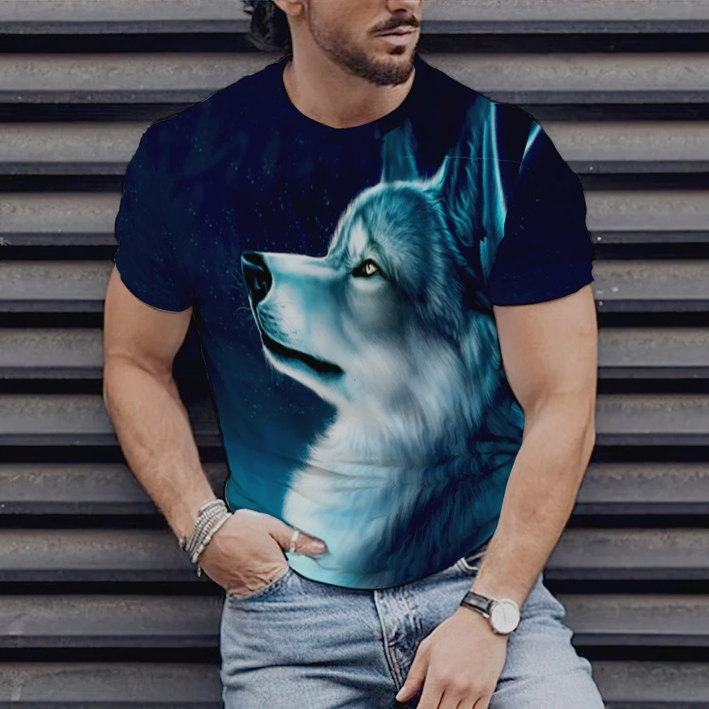Футболка мужская в стиле хип-хоп, с 3D-принтом волка, коротким рукавом, дышащая, с круглым вырезом, 2021