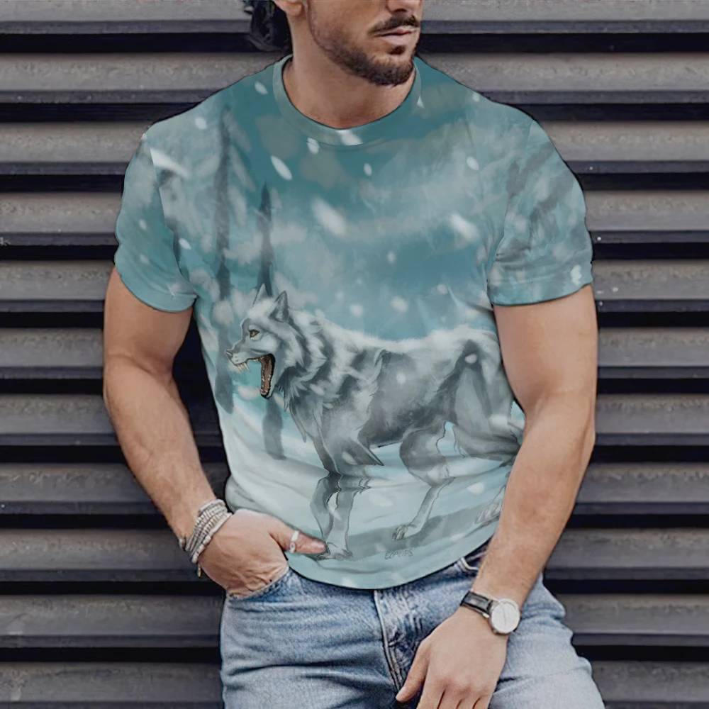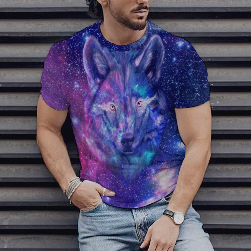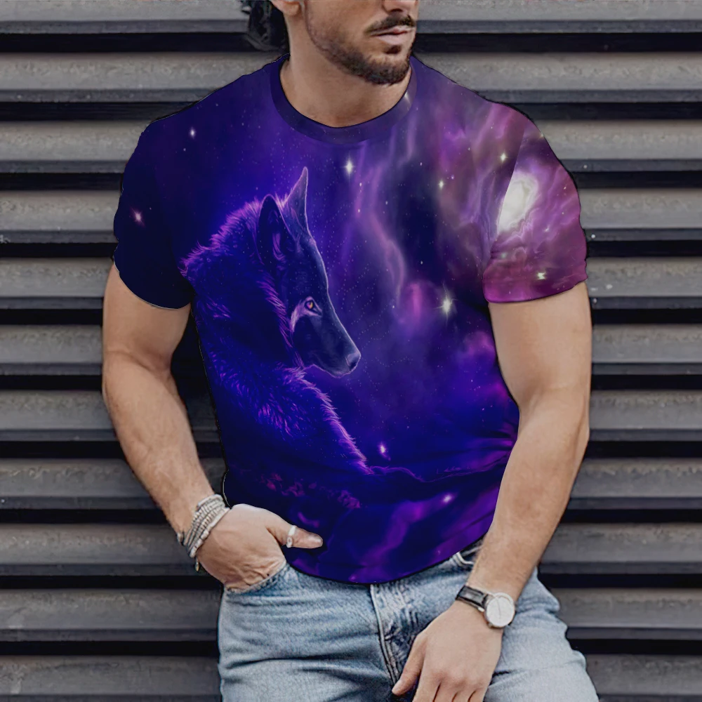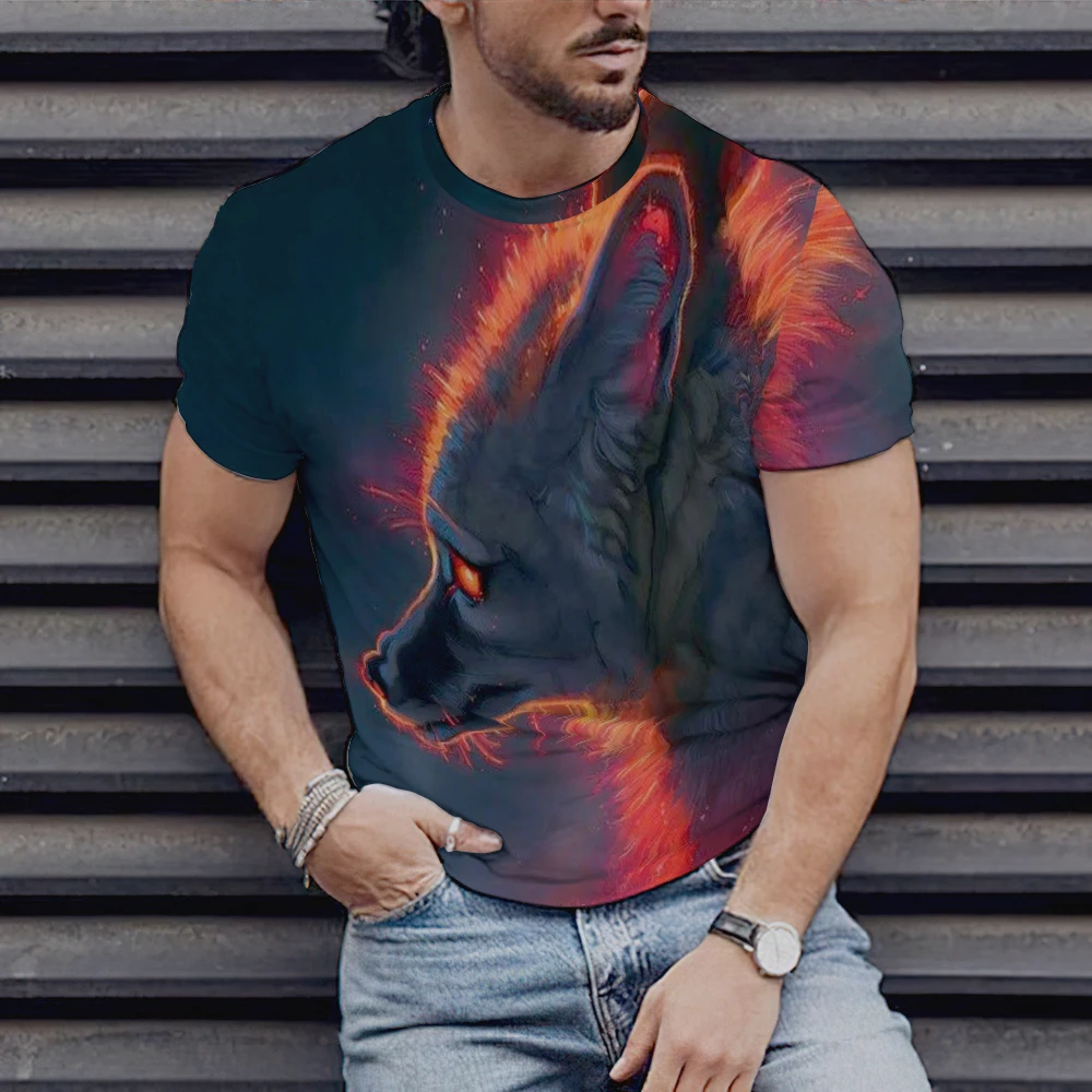 Футболка мужская в стиле хип-хоп, с 3D-принтом волка, коротким рукавом, дышащая, с круглым вырезом, 2021
