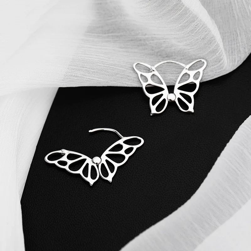 925 стерлингового серебра полый дизайн серьги-кольца с бабочкой для...