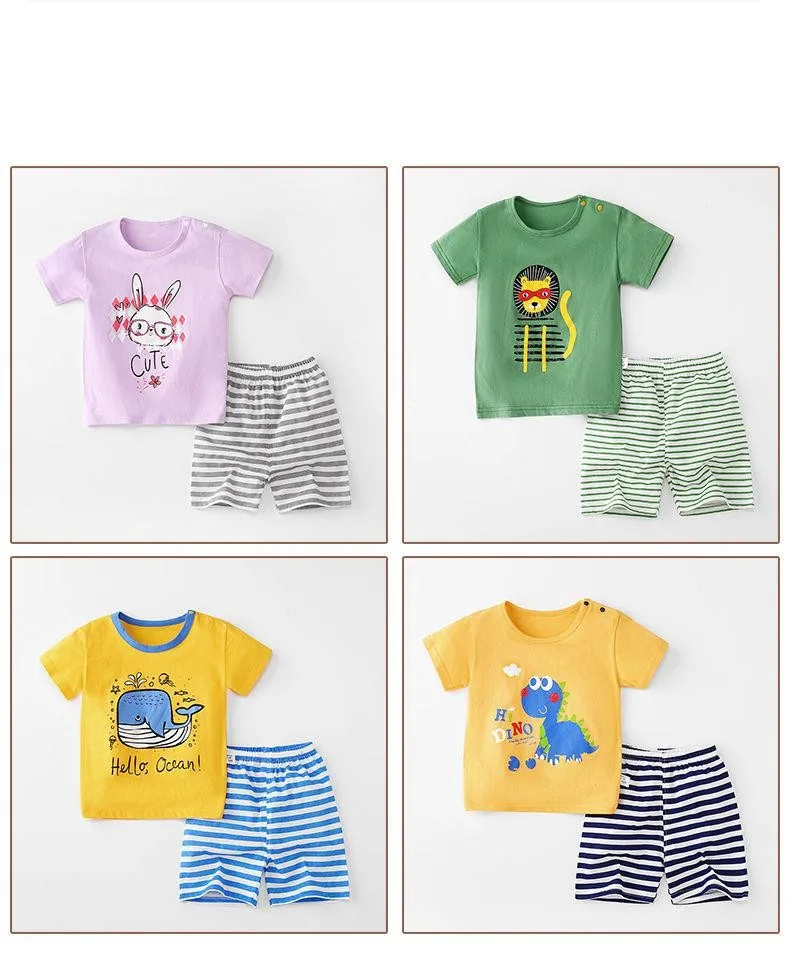 Хлопковый детский комплект одежды с коротким рукавом, летние спорти...