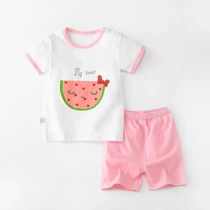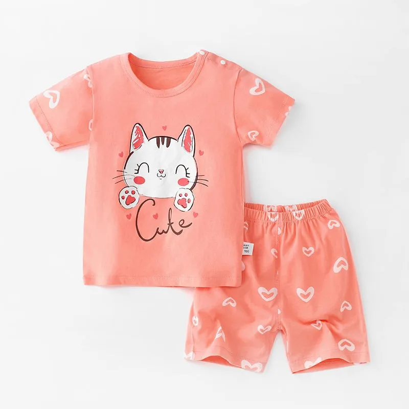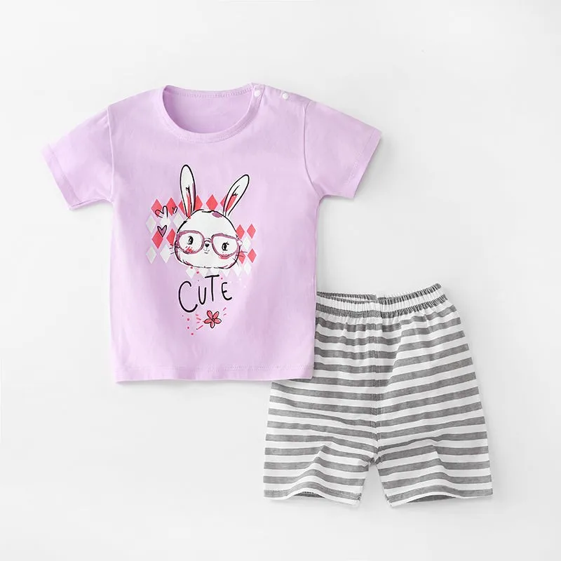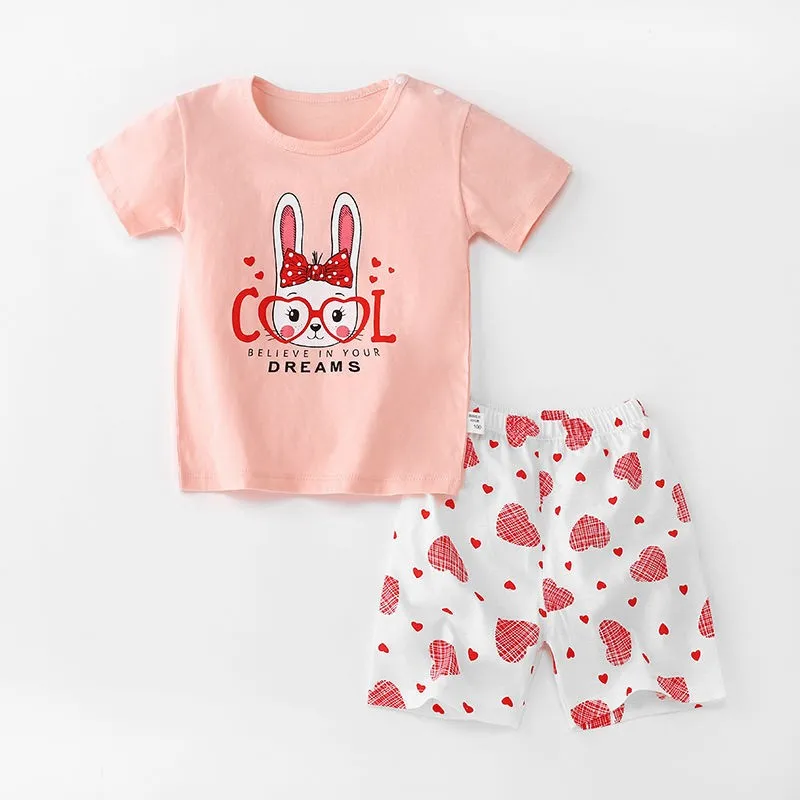 Розовые милые девушки комплект 2021 летняя одежда для маленьких девочек, одежда с рисунками из мультфильмов, топы, шорты, комплект из 2 предметов, Повседневная одежда, Домашняя одежда комплект одежды для девочек
