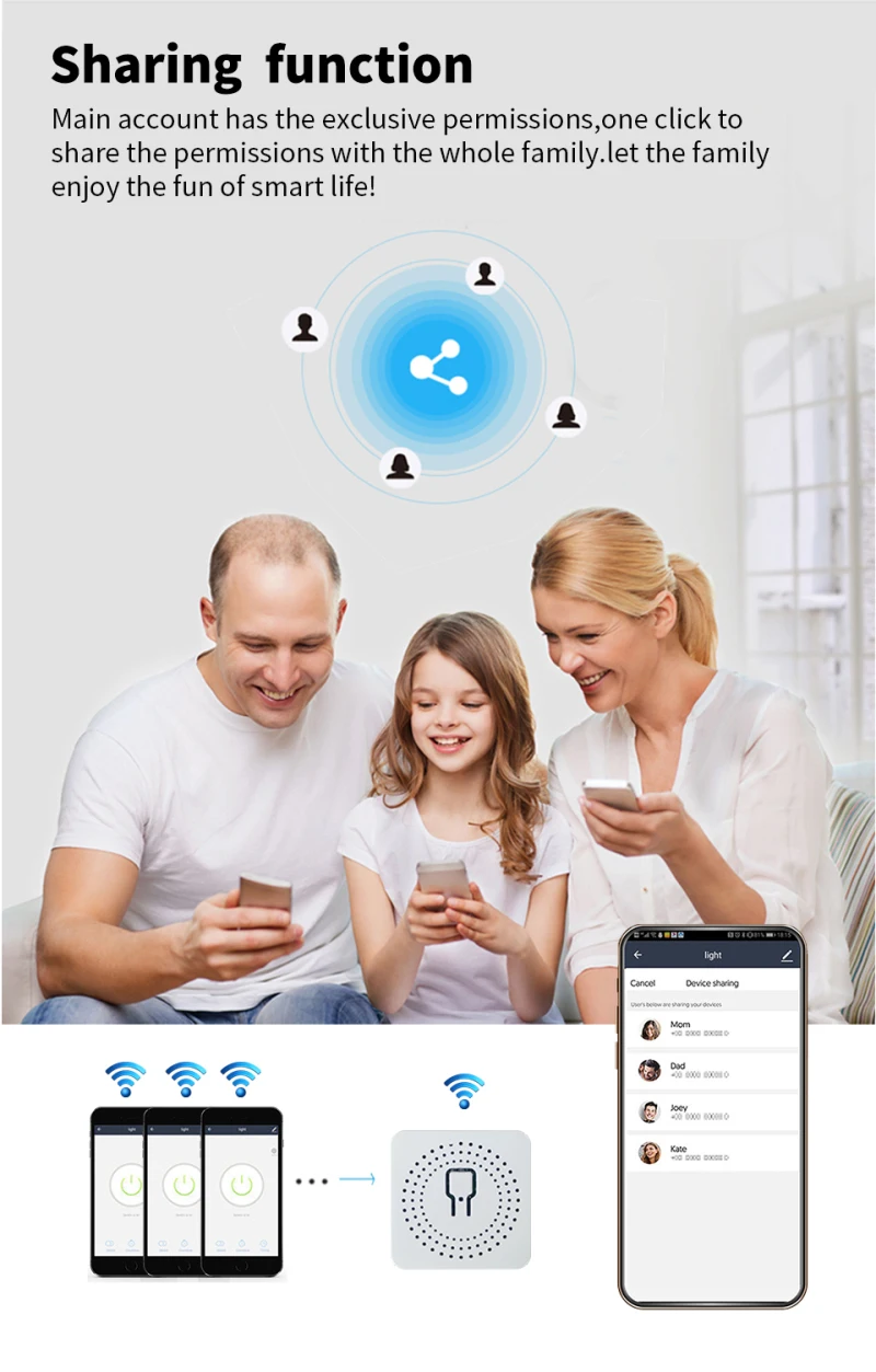 Основная учетная запись может быть предоставлена другим членам семьи, иФункции и настройки полностью сохранены и скопированы; Безопасность: как только лампа добавится к основной учетной записи, лампа будет и другие пользователи больше не могут найти и добавить; его необходимо активно делиться, прежде чем другие смогут использовать его.