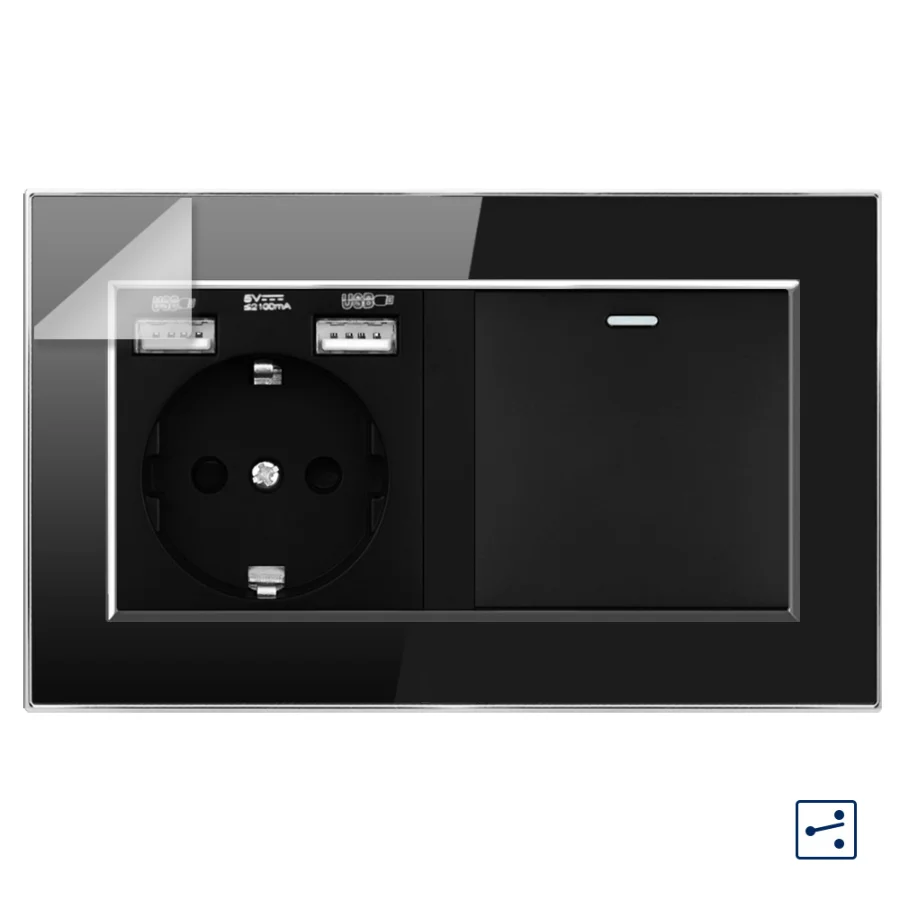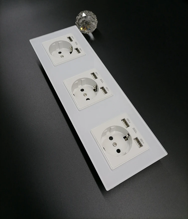 Розетка с 2usb + 1ганг2way (146 мм * 86 мм) на поверхности изделия имеется защитная пленка, которую можно снять после установки