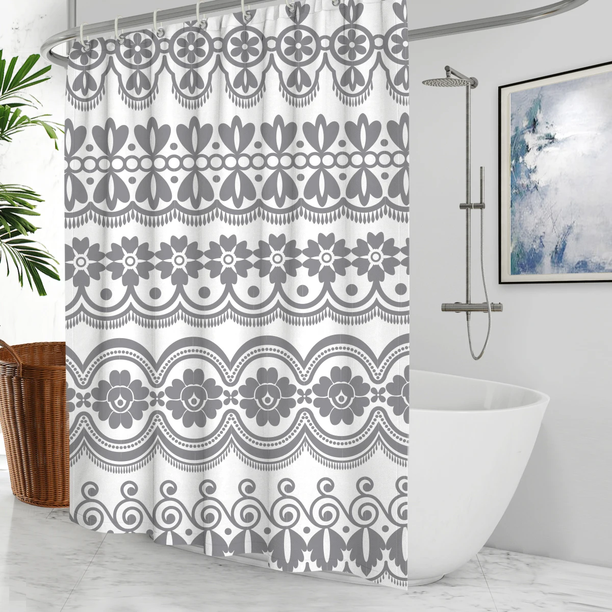 Белая современная ткань в стиле бохо, черная душевая занавеска, подкладка для ванной комнаты, душвора, шикарный Племенной геометрический принт в полоску, водонепроницаемая с крючками
