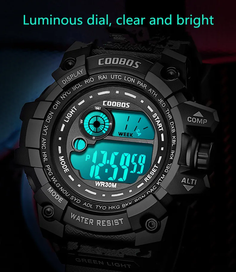 Спортивные мужские наручные часы, водонепроницаемые цифровые электронные светодиодные часы, 24 часа, хронограф, светящиеся мужские часы
