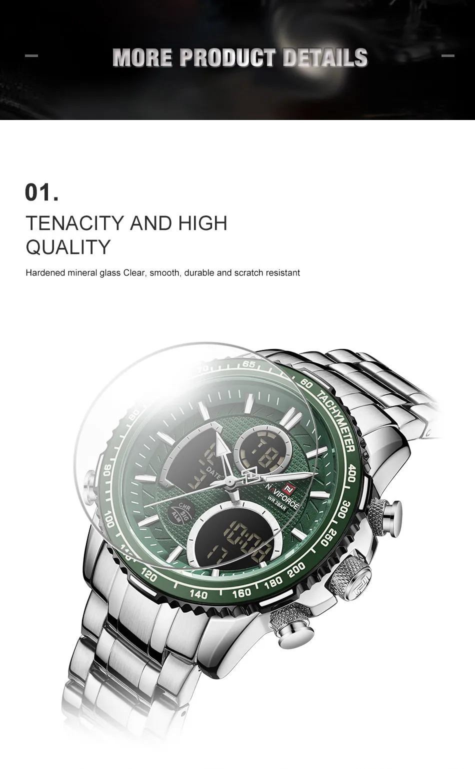 Часы наручные NAVIFORCE Мужские кварцевые, роскошные деловые модные с двойным дисплеем, аналоговые цифровые светящиеся водонепроницаемые с календарем