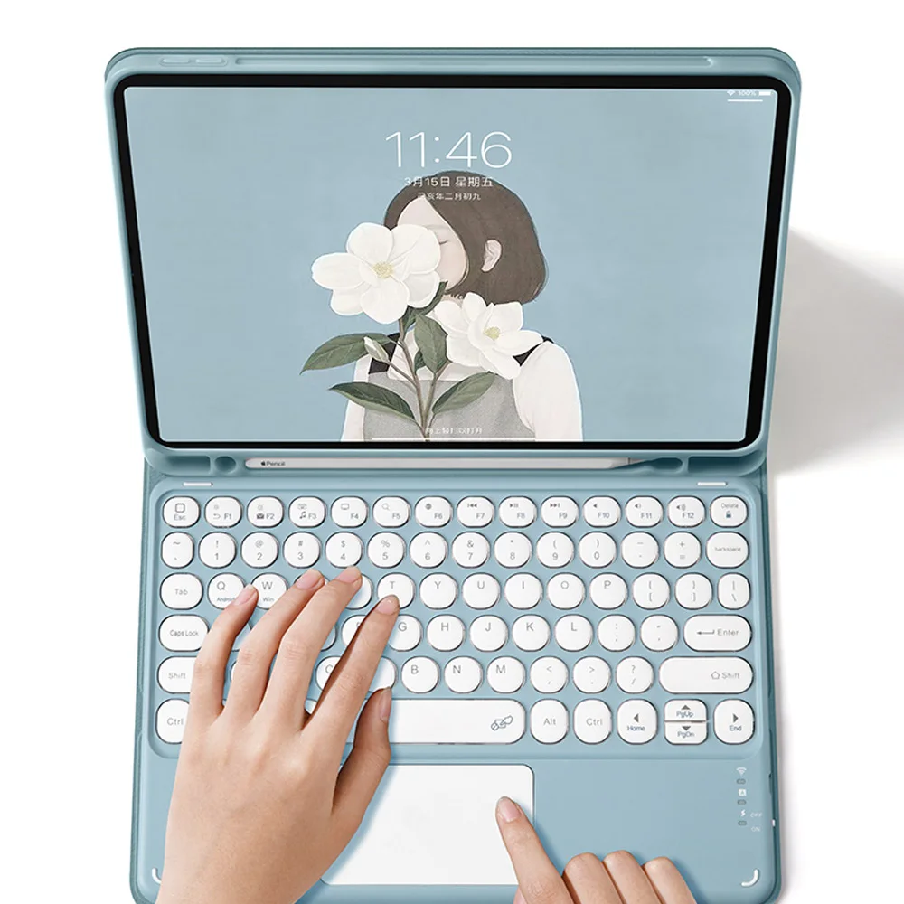 Features1Bluetooth-Compatible Round Key Keyboard case with Pencil Holder