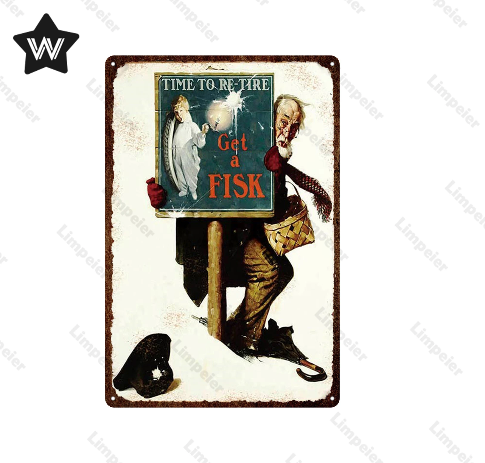 Винтажная металлическая наклейка на стену в стиле ретро с изображением шин