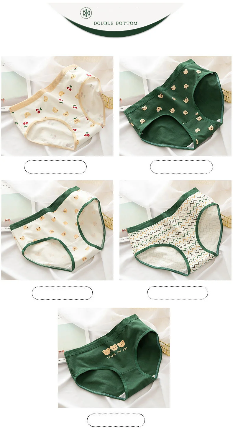 Японское нижнее белье с милым медведем для девушек, зеленое хлопков...