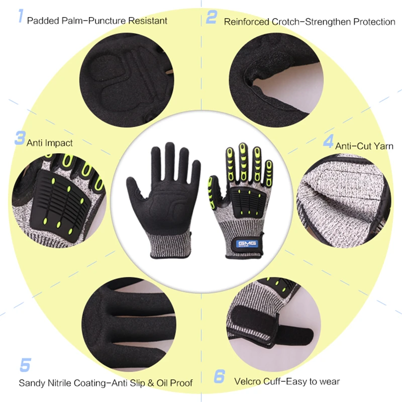 Перчатки, устойчивые к порезам, противоударные, ударопрочные, GMG, TPR, защитные рабочие перчатки, антивибрационные, маслостойкие перчатки