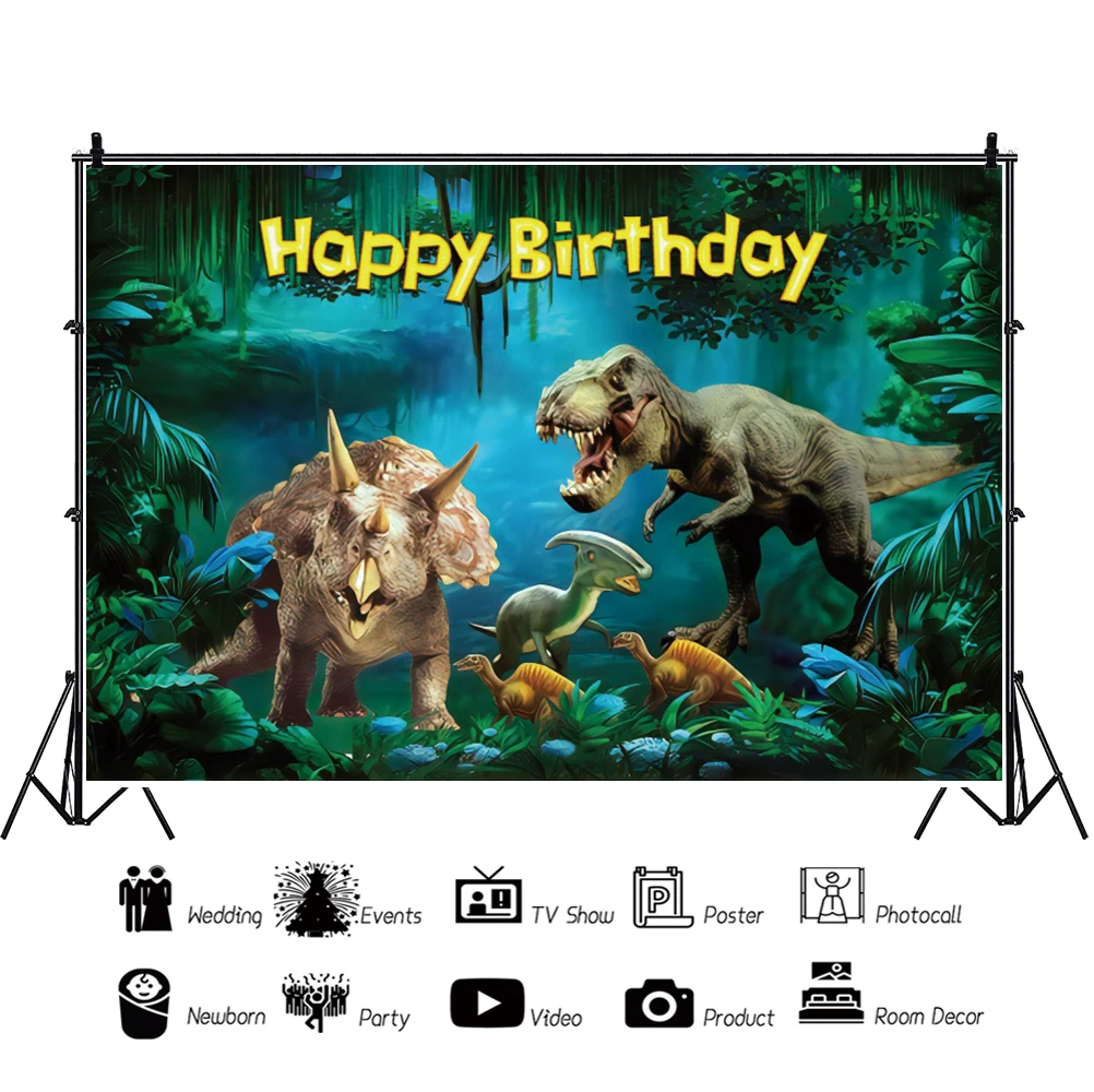 Laeacco зеленый лес веселый динозавр День рождения кустарники по индивидуальному заказу баннер Фотофон фон для фотосъемки фоны для фотосъемки
