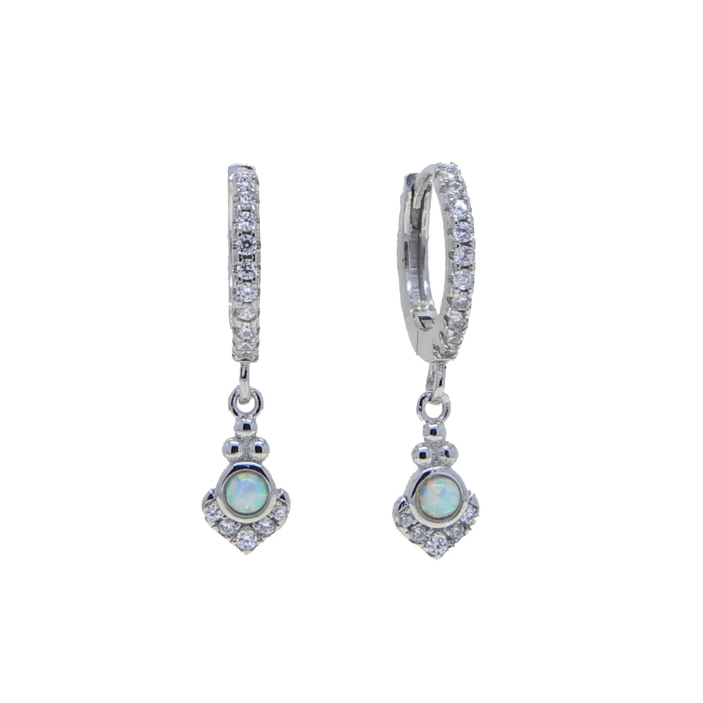 Минимальный 925 пробы серебряные геометрические белые CZ Опал Камень Шарм обруч серьги Изящные мульти пирсинг ювелирные изделия