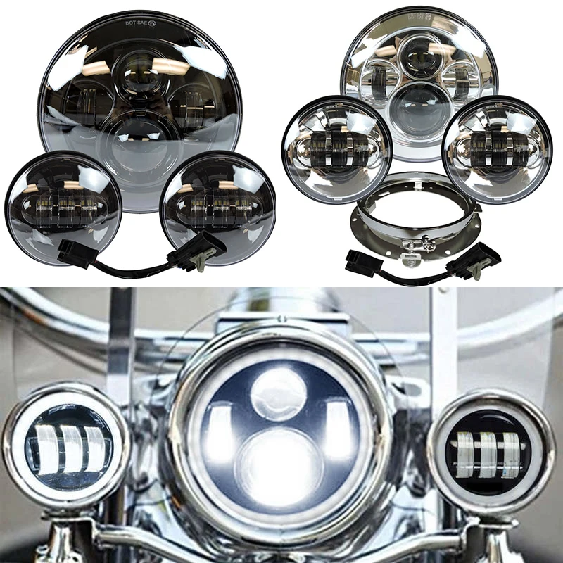 7 дюймовый светодиодный фар Белый DRL, 4,5 дюйма Halo противотуманные фары, Переходное кольцо для Touring Electra Glide Road King Street Glide