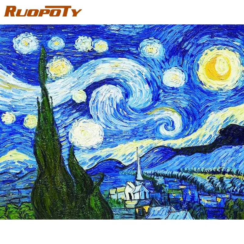Алмазная живопись RUOPOTY, квадратнаяКруглая Мозаика, вышивка крестом, Ван Гог звездное небо Алмазный, вышивка стразы, подарок для рукоделия
