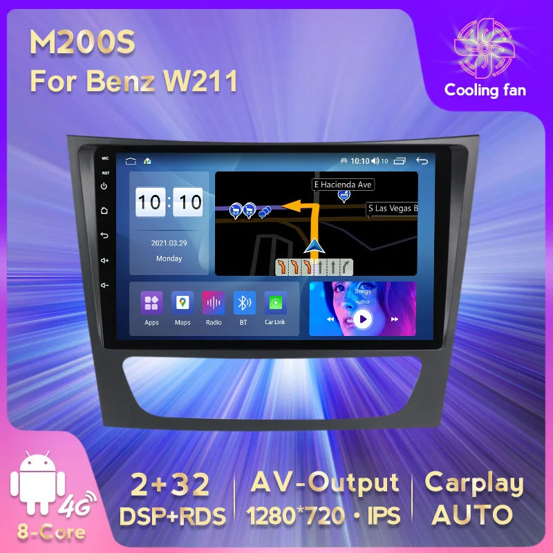 Автомагнитола на Android 10,0 для Mercedes Benz E-class W211, E200, E220, E300, E350, E240, E270, E280, W219, типоразмер 2DIN