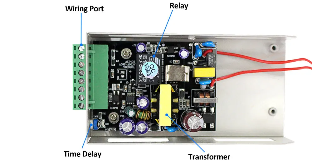 Посылка включает в себя: клавиатура управления доступом + блок питания + 180 кг Электрический магнитный встроенный замок + кнопка выхода + 10 брелоков