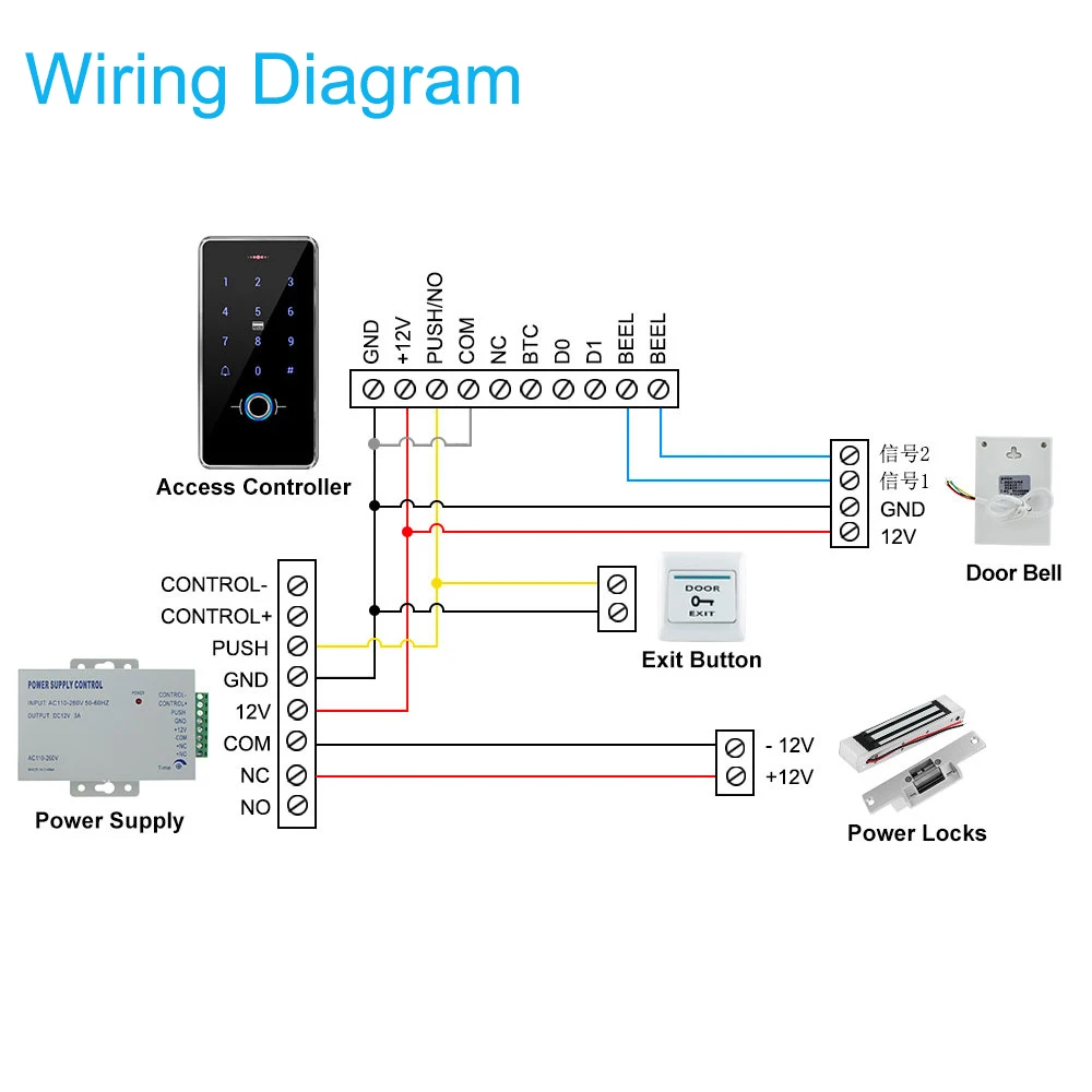 Посылка включает в себя: Клавиатура контроля доступа + блок питания + 180 кг Электрический магнитный замок + кнопка выхода + 10 брелоков