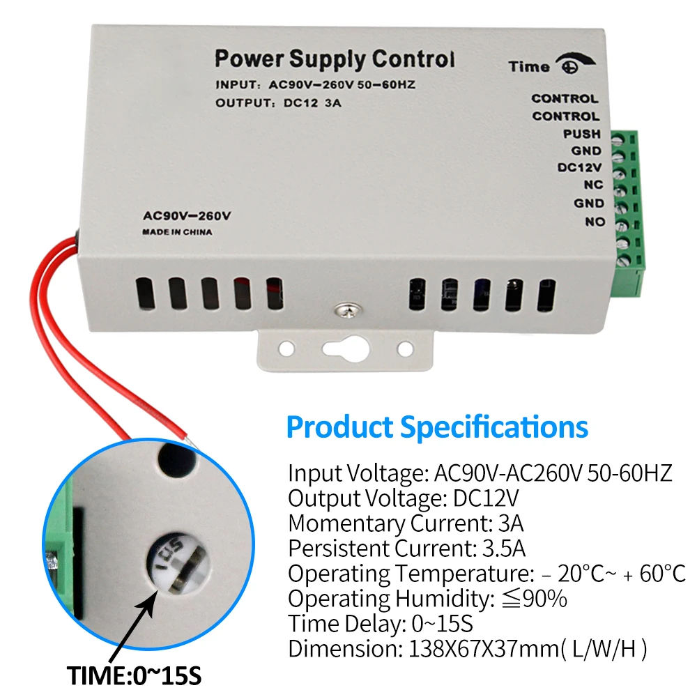 1. Вход переменного тока: Стандартный AC100V-240V 50-60 Гц2. Выход постоянного тока: Стабильность вольт DC12V/ 3 A3. Размеры посылка: 117x68x32 мм4. Функция дистанционного управления: Да5. Размер: 138x67x37мм (Д/Ш/В)