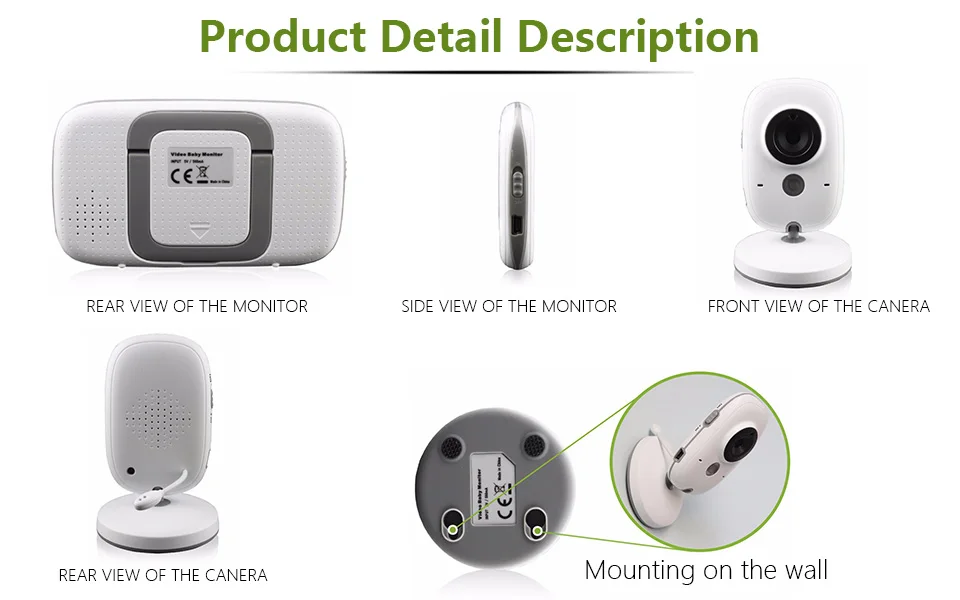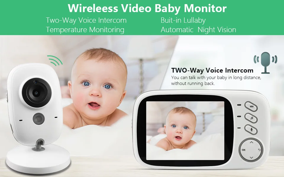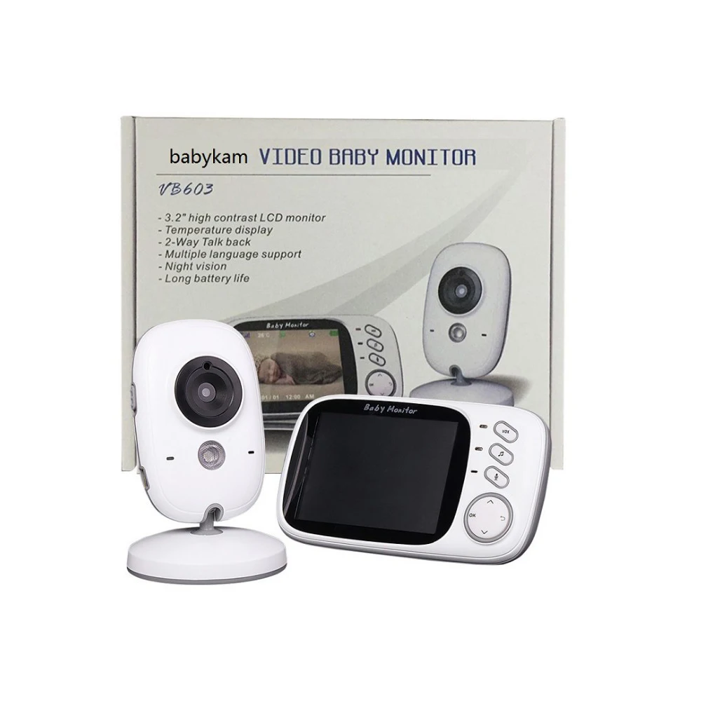 Информация о продуктеНазвание продукта: беспроводная цифровая радионяня 3,2 дюйма, двусторонняя связь, отображение температуры, музыкальный плеер, уход за ребенкомМодель продукта: VB603Пункты продажи товара:1. Дизайн модный и удобный для переноски;2. Двусторонняя связь;3. Контроль температуры;4. Встроенная музыка в камеру;5. Автоматическое ночное видение6. Передача цифрового сигнала, стабильная и без помех;7. Высококонтрастный цветной ЖК-монитор 3,2 дюйма8. Длительный срок службы батареи (до 8 часов в режиме голосового управления)9. Многоязычный (английский, французский, испанский, итальянский, немецкий, русский, португальский, турецкий)