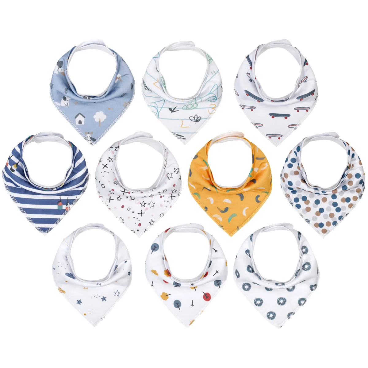 Детскую бандану слюни нагрудники унисекс 10 шт. комплект нагрудники для слюни и прорезывания зубов 100% органического хлопка новорожденных абсорбент гипоаллергенный нагрудники