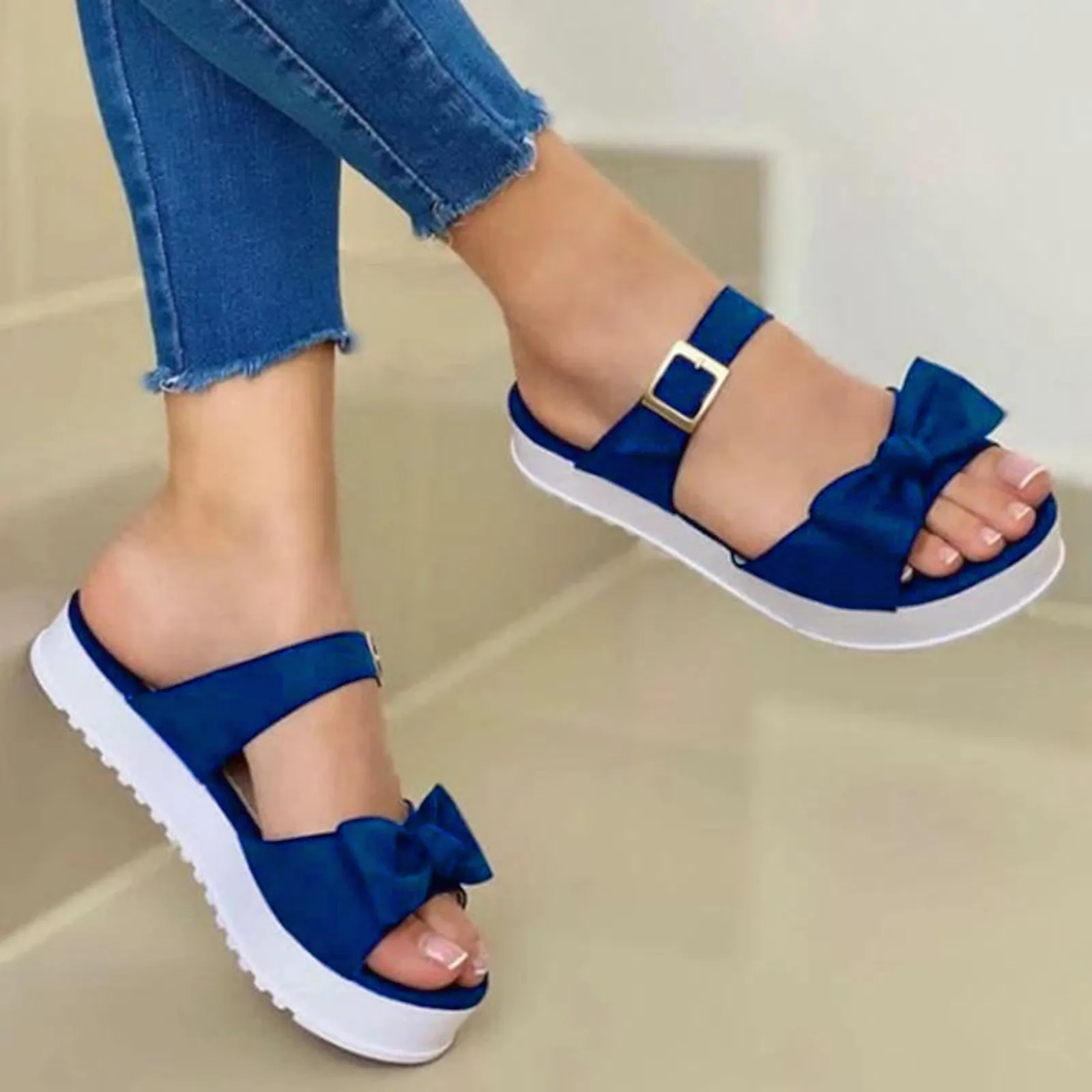Женские летние модные размера плюс с бантом пляжные с открытым носком, на плоской подошве; Сандалии