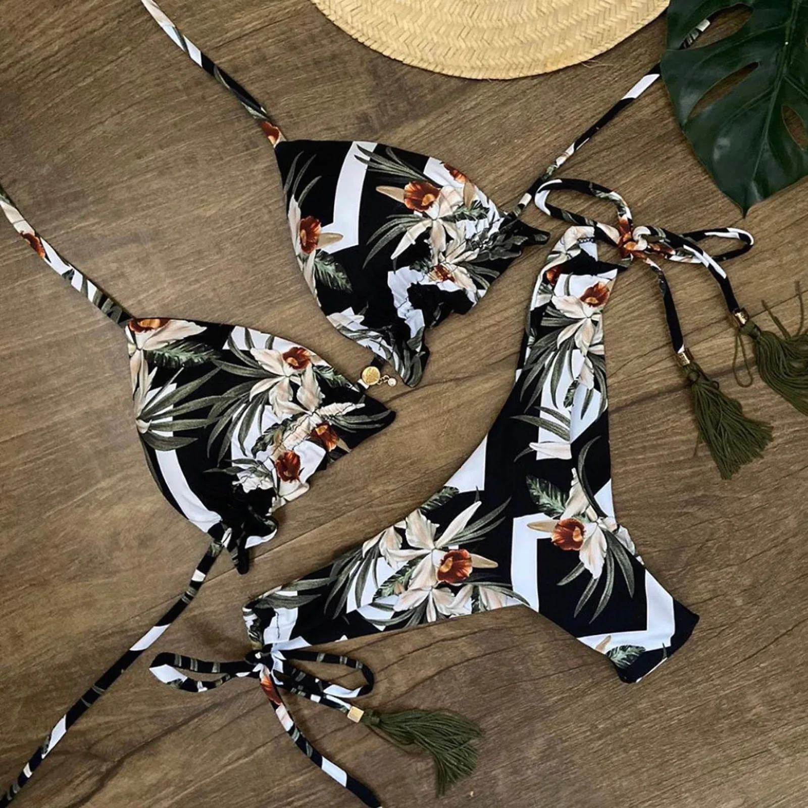 Женский комплект бикини, с оборками и перекрестными чашечками, с ля...