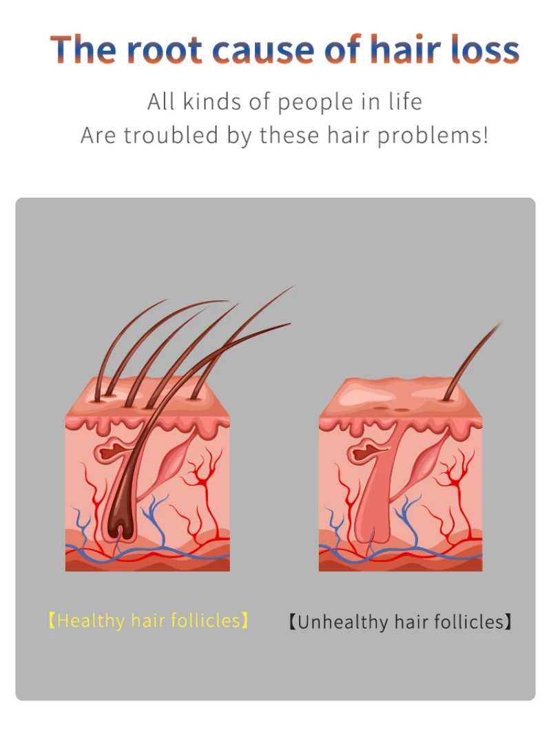 Нано-красный светильник может непосредственно достигать сосков для волос под кожей. Он обладает очевидным антивозрастным эффектом и может облегчить выпадение волос, вызванное уменьшением коллагена.