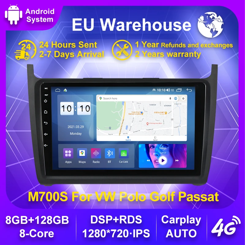 Автомагнитола с GPS-навигацией, Автомобильный мультимедийный видеоплеер для VW POLO Sedan 2008-2015, 6 + 128G, Восьмиядерный процессор, версия на Android 11