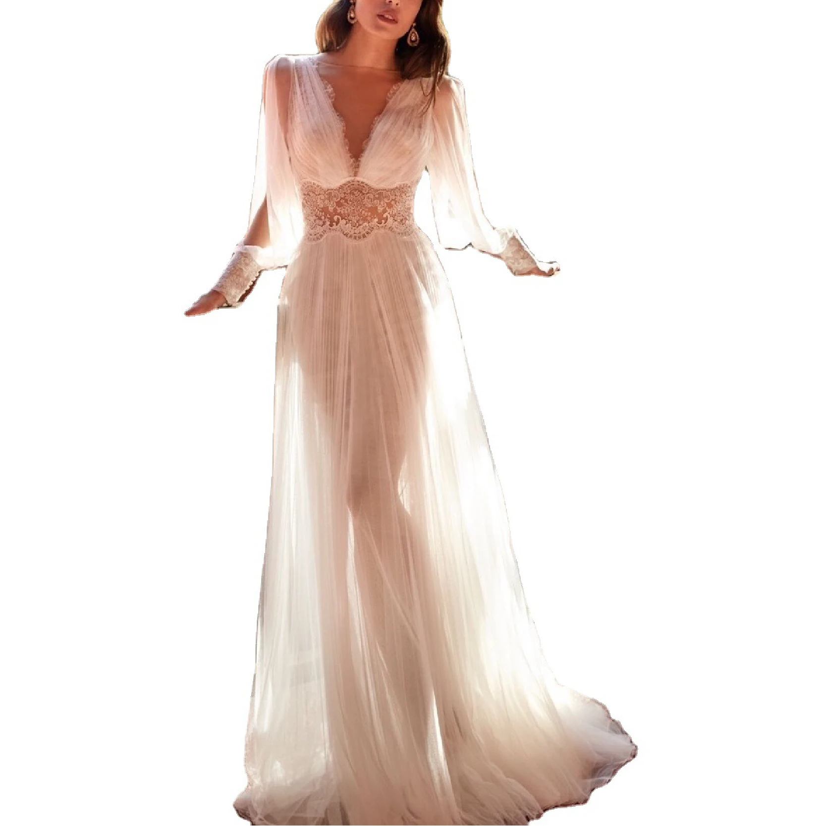 Новое поступление 2021, женское платье Grosfairy, повседневное Брендовое сексуальное кружевное Сетчатое платье с V-образным вырезом и длинными рукавами, подходит для формальных вечеринок